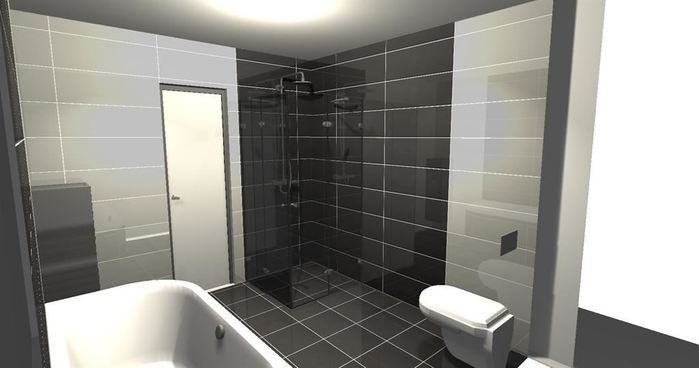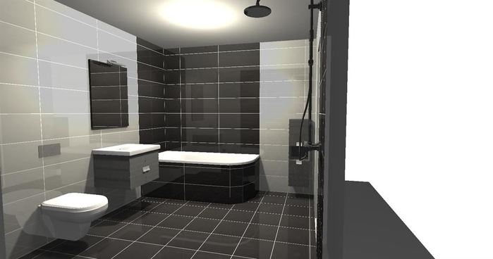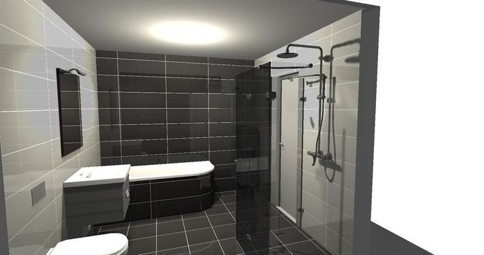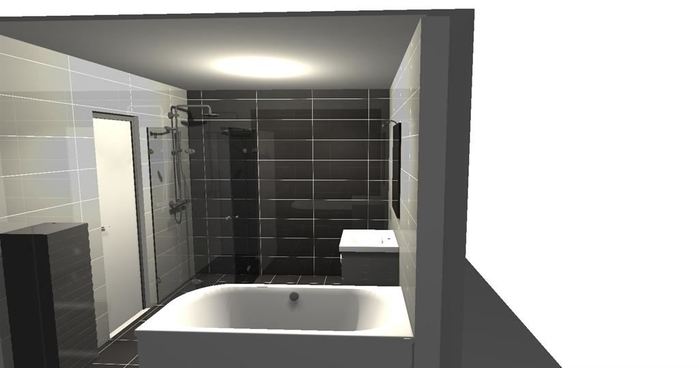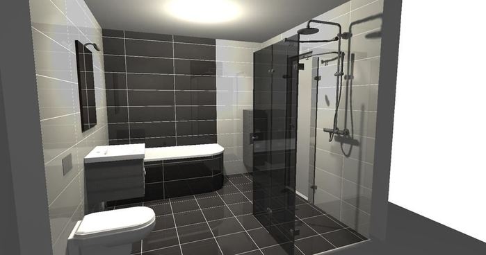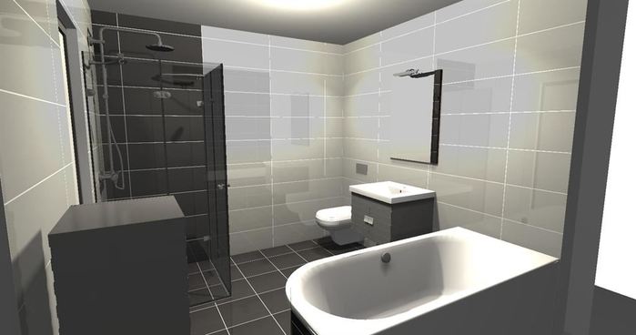 3D návrh koupelny z obkladu Idole je pro novostavbu řadového rodinného domu v Třebíči Na kopcích. Dostavbu novostavby včetně koupelen provádíme na klíč včetně veškerých instalatérských prací, elektro, podlahářské práce.