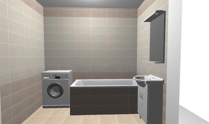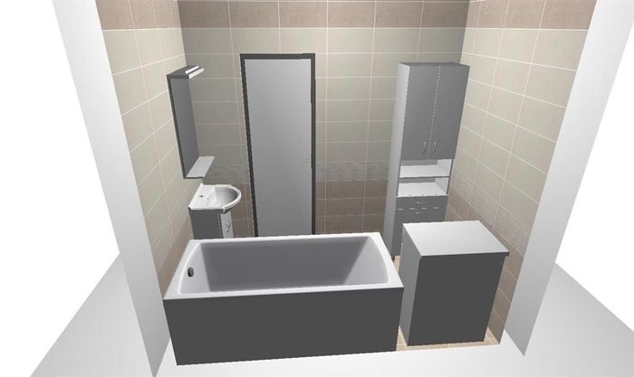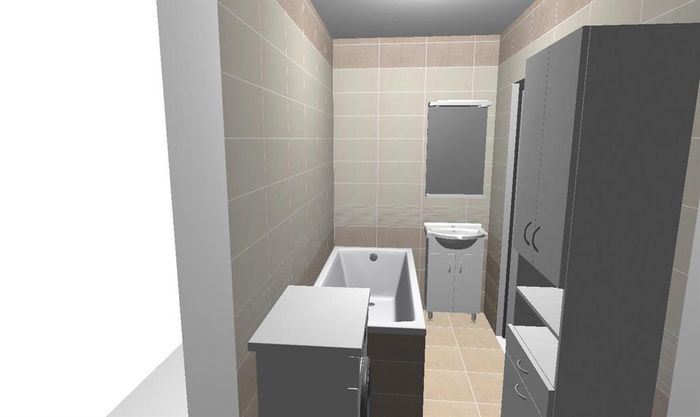 Toto 3D je vypracováno pro budoucí realizaci rekonstrukce bytového jádra v Brně. Obklad je použit Textile. Klasická rovná vana 160, Koupelnový nábytek NOVA.