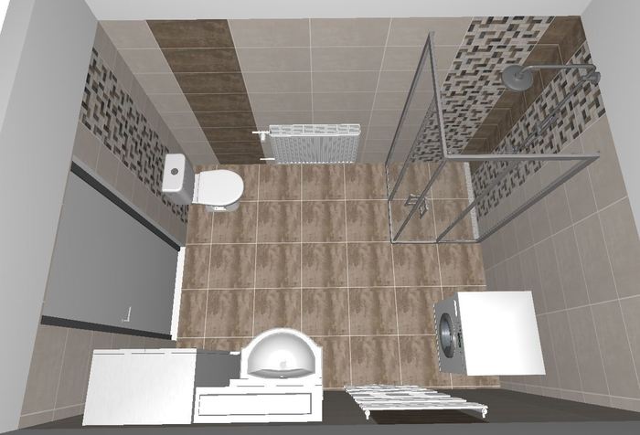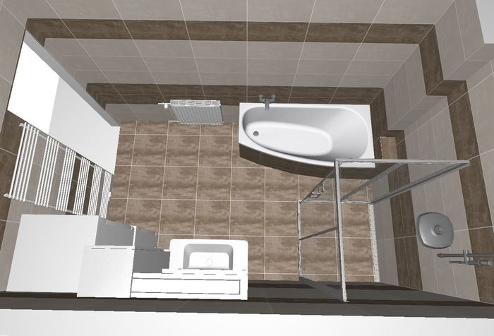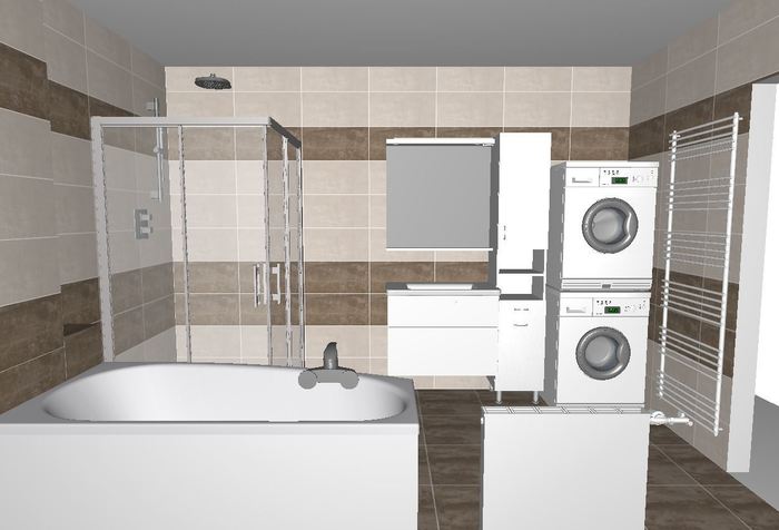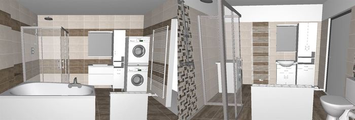 Pro rekonstrukci koupelen a toalet v řadovém RD jsme prováděli 3D návrhy.