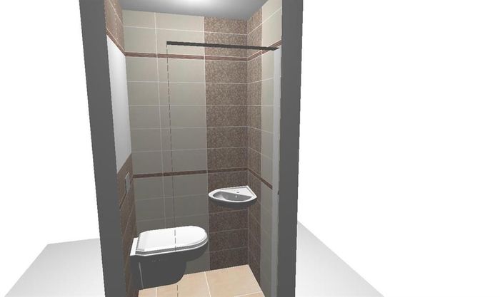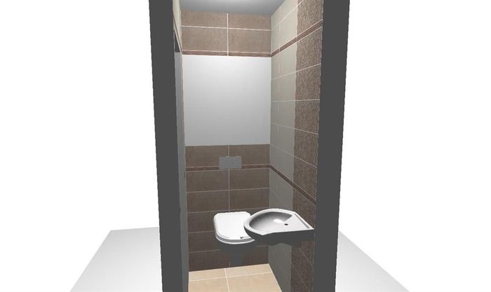 Vizualizace k rekonstrukci bytového jádra v panelovém domě. Použitý obklad od firmy Rako. Pod sušičku je plánovaná obložená deska, protože pračku a sušičku nemá zákazník od stejné firmy. Na WC bude instalována konstrukce od Geberitu. Koupelnový nábytek bude osazen od výrobce Dřevojas.