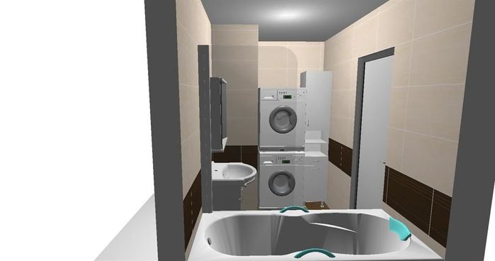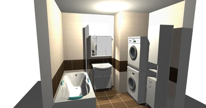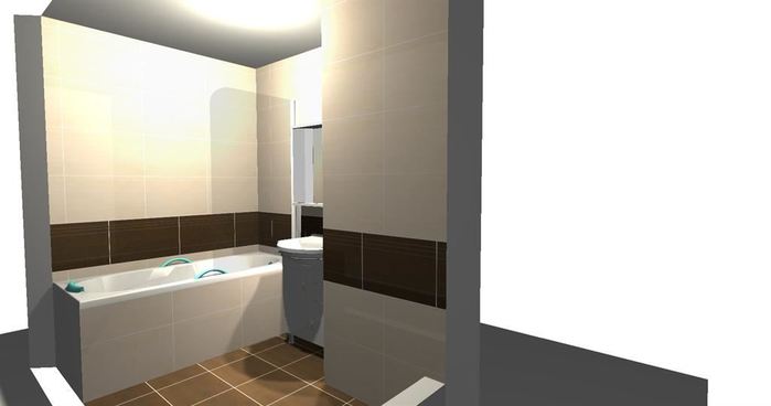 3D návrh rekonstrukce bytového jádra v Praze je proveden z obkladu Kumaru. Rekonstrukce bude bytového jádra bude prováděna změnou pozice a umístění a velikosti nové koupelny a WC.
