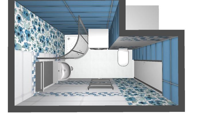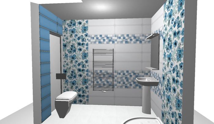 Vizualizace rekonstrukce bytového jádra spojeného s WC. Obklad a styl obložení je proveden přesně dle požadavků zákazníka. Na základě vizualizace jsme provedli cenovou kalkulaci rekonstrukce.