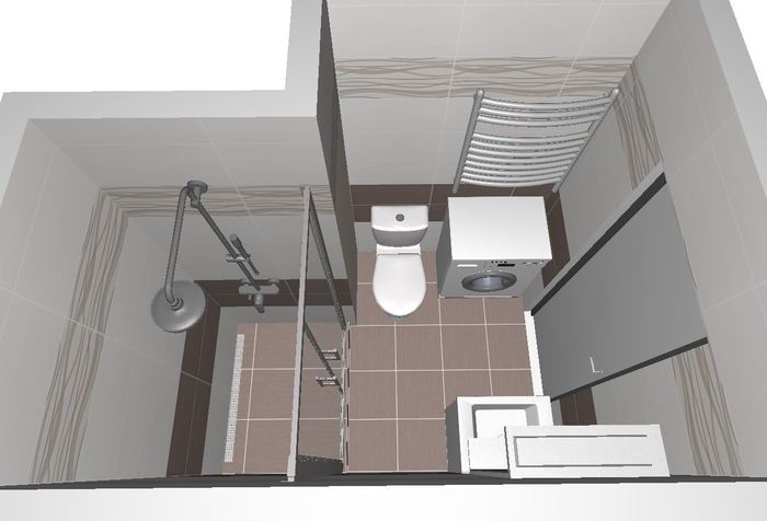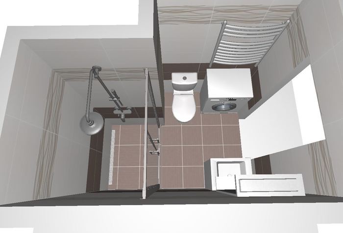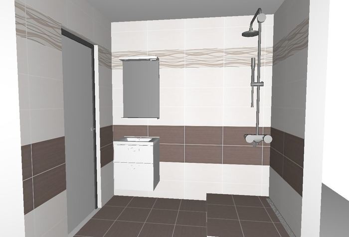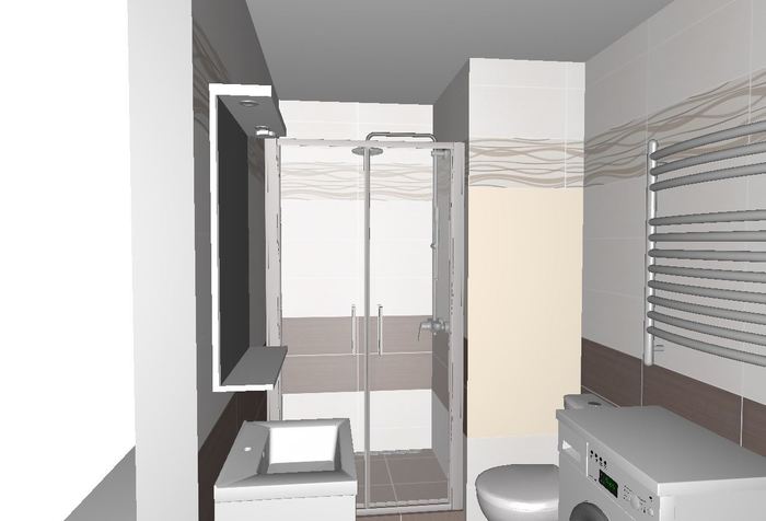 Vytvořili jsme dle požadavků zákazníka 3D návrh koupelny v bytě 1+1. Toto bytové jádro je menší s plechovou vaničkou 120cm. Po odstranění a novém vyzdění bytového jádra, v původních rozměrech, do vzniklého prostoru bude osazen zděný sprchový kout se sprchovými dveřmi do niky. Nové kombi WC a umyvadlo s nábytkem.