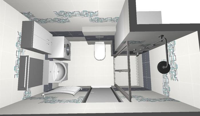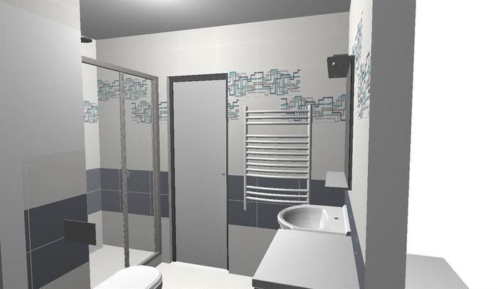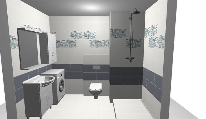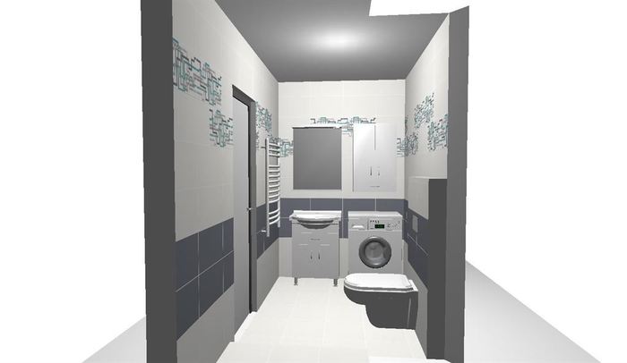 3D návrh je vypracován pro rekonstrukci jádra v cihlovém činžovním domě. Prostor WC a koupelny je spojen do jedné koupelny se závěsným klozetem. V místě původního WC se sprchový kout.