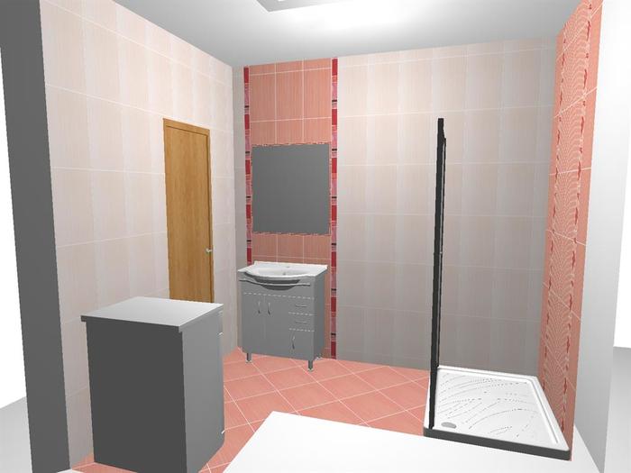 3D návrh je vypracován pro rekonstrukci bytového jádra v Třebíči. Pro návrh byl použit obklad Fashion. Sprchový kout je o rozměru 100x80.