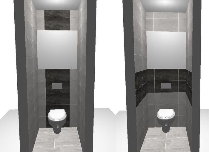 Na přání zákazníka jsme vytvářeli pro porovnání dvě verze koupelny - svislé pruhy nebo vodorovné.