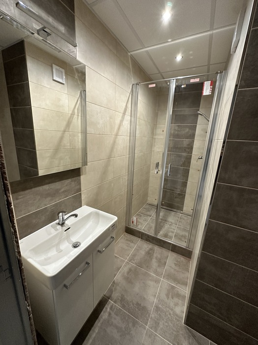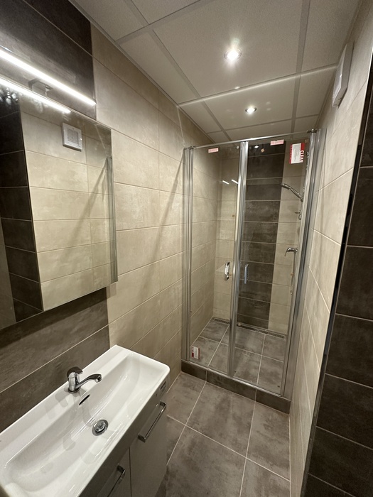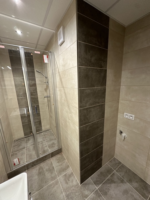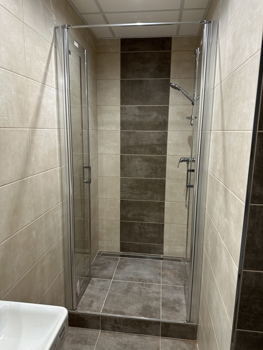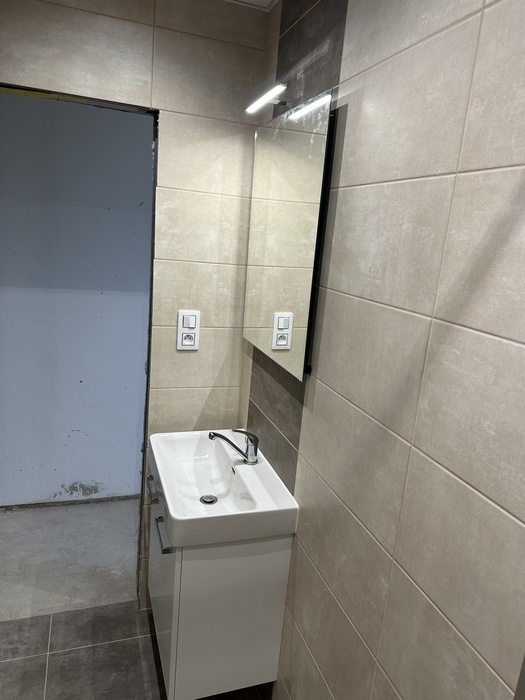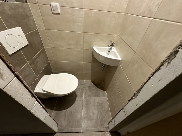 V bytě 4+1 jsme prováděli rekonstrukci bytového jádra na klíč. Tato rekonstrukce probíhala v panelovém domě v Okříškách. Postavili jsme nové zděné bytové jádro, který má změněný tvar tak, aby mohl být postaven zděný sprchový kout 100x100 cm s odtokovám žlabem..