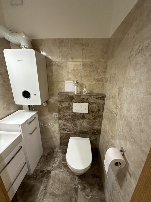 Pro našeho zákazníka jsme prováděli rekonstrukci koupelny a wc na klíč. Původní koupelnu s vanou jsme nahradili koupelnu se sprchovým koutem, který je osazen walk-in stěnou. Původní kombu wc jsme nahradili závěsným klozetem. Tuto rekonstrukci jsme prováděli na klíč včetně obkladů, všech prací, instalace, dodání vybavení a kopmletace.