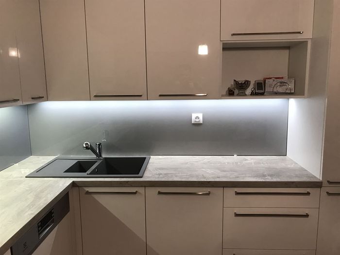 Po rekonstrukci bytového jádra v rámci rekonstrukce interiéru kuchyně jsme prováděli montáž lakovaného skla.