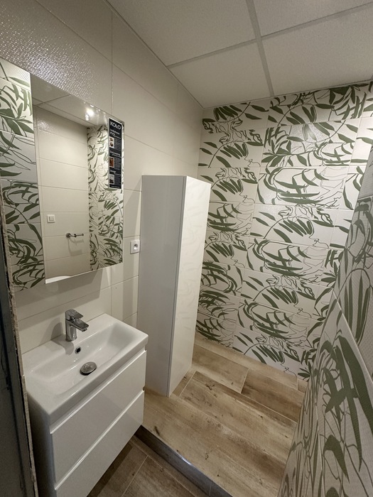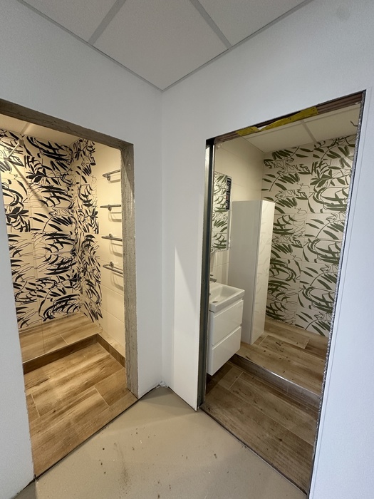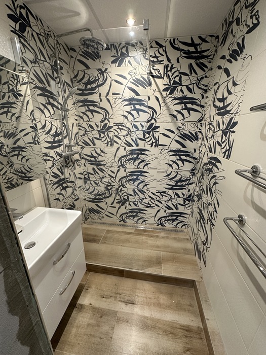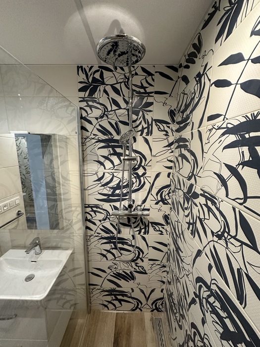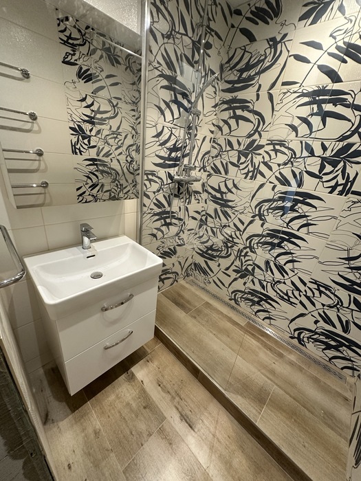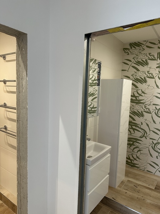 V panelovém domě v bytě 3+1 jsme prováděli rekosntrukci celého bytu - interiéru i bytového jádra. Tato rekonstrukce probíhala na klíč. Koupelna je přemístěna v komoře a wc je rozšířeno do chodby. V pokojích jsou nové stěrkované omíty, výmalba, sádrokartonové podhledy, nové podlahy, vybouráné kovové zárubně a příprava pro obložky.
