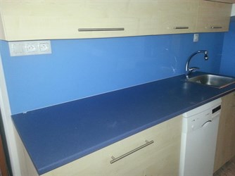 Lakované sklo - zaměření, výroba, montáž. Dnes jsme prováděli montáž lakovaného skla do kuchyně. Odstín a barvy si vybírá zákazník dle vlastních preferencí.