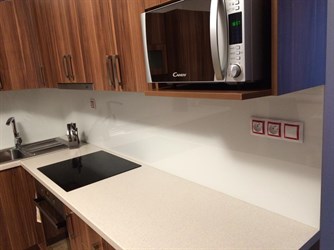 Dokončili jsme dodávku a montáž lakovaného skla mezi kuchyňskou linku.