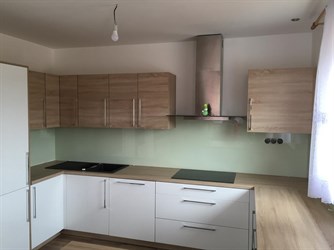 Do nově namontované kuchyně v novostavbě RD jsme prováděli zaměření a montáž lakovaného skla.