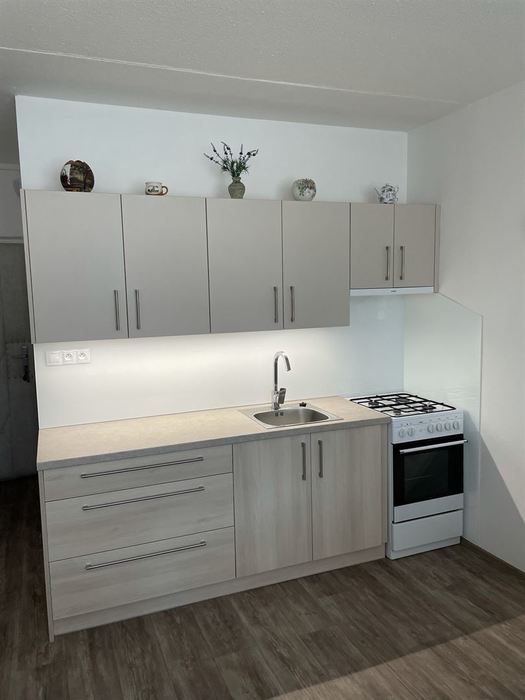Po námi provedené rekonstrukci bytového jádra v bytě 1+1 jsme do kuchyně prováděli montáž kaleného lakovaného skla jako obklad kuchyně.