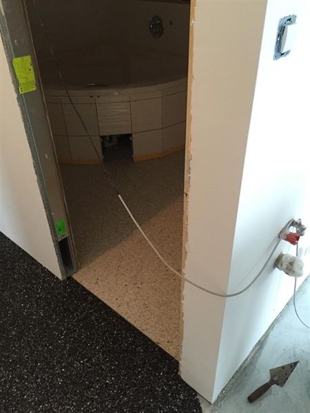V rámci rekonstrukce bytu v panelovém domě jsme prováděli pokládku oblázkové podlahy v kuchyni, koupelně a WC.