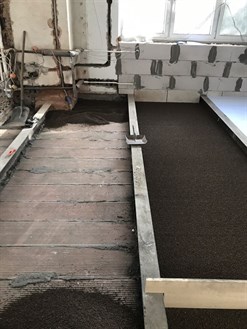 V rámci rekonstrukce interiéru RD jsme prováděli kompletní demolice stávajících podlah až na hurdisky. Byl odstraněn škvárový zásyp. Na vyrovnání hurdisek jsme požili Liapor. Na vyrovnané podlahy jsme položili polystyrén. Vrchní vrstva pro pevnější podklad je z extrudovaného polystyrénu. Součástí příprav podlah pro podlahové vytápění byla rekonstrukce elektroinstalace a zatrubkování interiéru (pro datové rozvody a příprava pro chytrý dům) a exteriéru (příprava pro ovládání venkovních žaluzií, příprava pro kamery), úprava stávající zabezpečovačky domu.