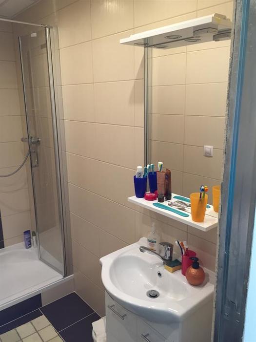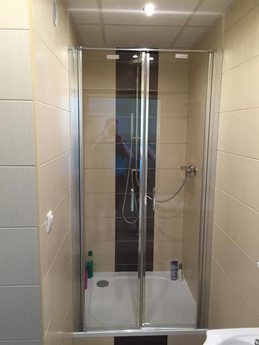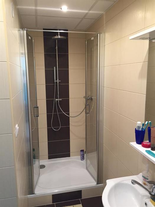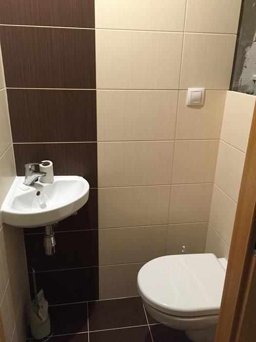 Rekonstrukce bytového jádra v panelovém domě v Třebíči. Koupelna má změněnou dispozici. Takto přestavěná koupelna vytvoří v kuchyni prostor pro rohovou kuchyňskou linku. V koupelně jsme použili vaničku litý mramor se sprchovými dveřmi firmy Ronal v provedení "Lítačky" - otevírání dovnitř / ven. WC je použito závěsné od firmy Geberit. WC jsme osadili rohovým umývátkem firmy Jika. Pro vchod do koupelny jsme použili zazděné pouzdro Japo pro posuvné dveře.