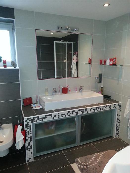 V novostavbě rodinného domu, kterou jsme prováděli na klíč, jsme koupelnu s WC obložili obkladem Futuro. Dodávali a montovali jsme veškeré vybavení a prováděli jsme všechny řemeslnické práce.