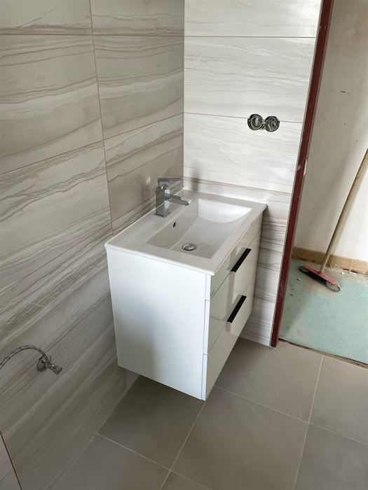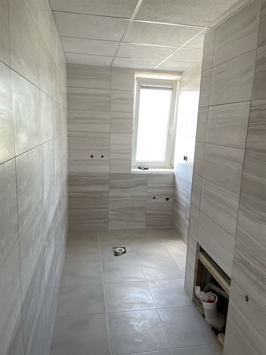 V bytě 2+1 jsme prováděli rekonstrukci stávající koupelny a WC. Byly odstraněny příčky: koupelna x toaleta a toaleta x chodbička. Byla postavena nová příčka z Ytongových tvárnic s kovovými zárubněmi ( vstup do nové koupelny), která je posunuta na hranici chodby a přilehlého pokoje a tím vznikla velká koupelna s WC.