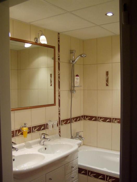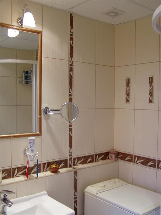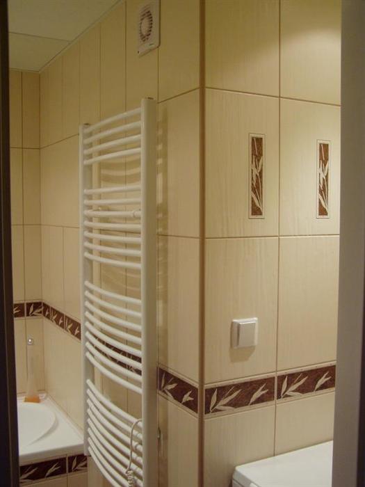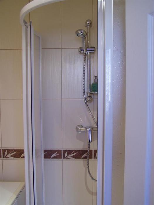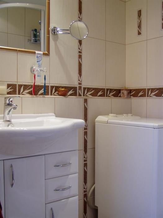 Tyto dvě koupelny jsou obě v bytech 3+1 v Třebíči v Borovině. Koupelna se sprchovým koutem je postavena podle původních rozměrů jádra. Druhá koupelna s vanou a dvojumyvadlem je postavena větší do kuchyně.