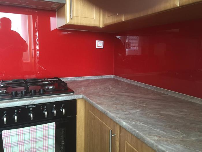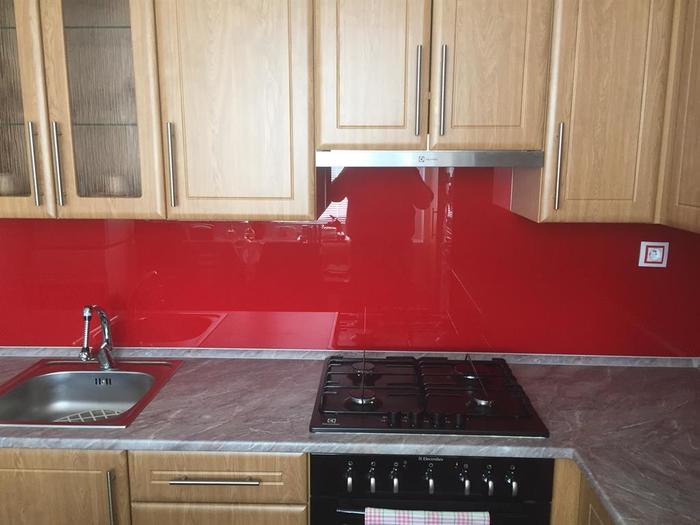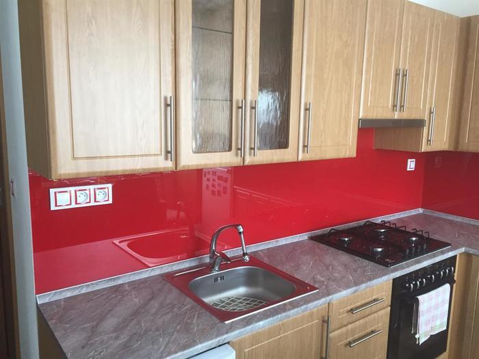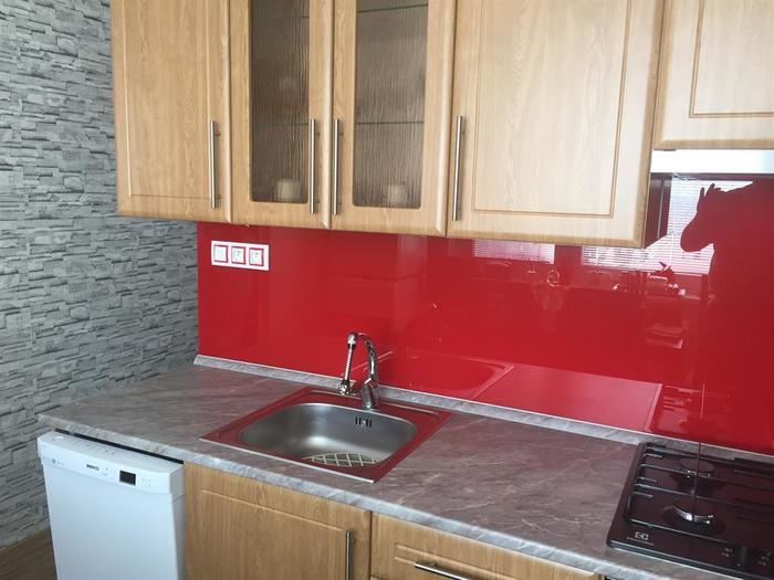 Po rekonstrukci bytového jádra jsme namontovali nové kalené lakované sklo do kuchyně. Sklo je vyrobeno na míru a po montáži kuchyně je nalepeno na zeď. Barvu skla si zákazník vybírá sám dle vlastního výběru.