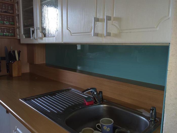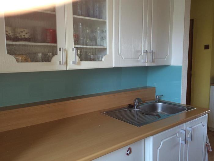 Provedli jsme montáž lakovaného skla do stávající kuchyňské linky ve starším RD. Sklo bylo zaměřeno a vyrobeno na míru. Použité kalené sklo je o síle 6 mm. Výběr barevného odstínu provádí zákazník.