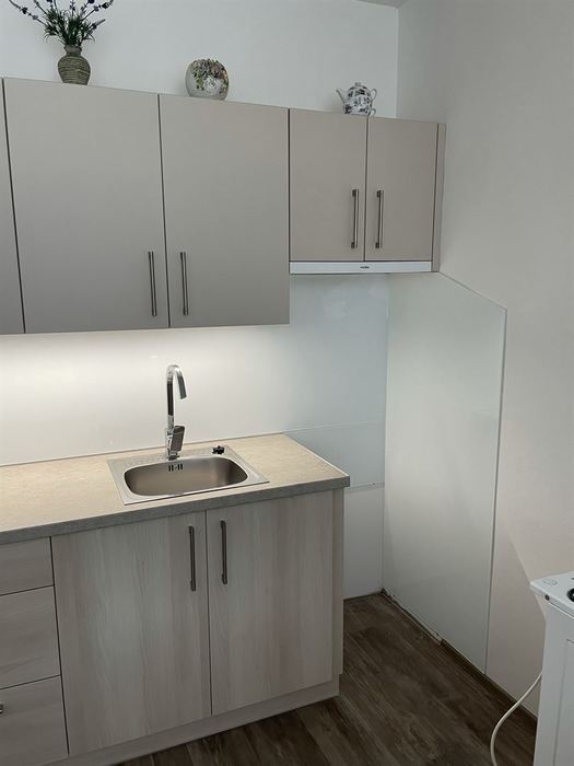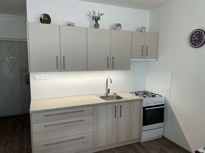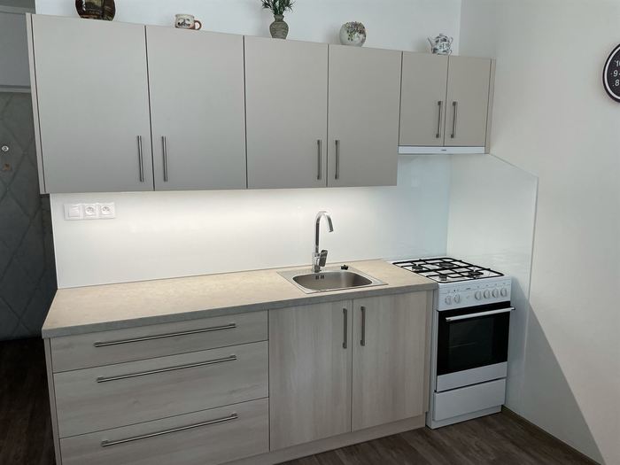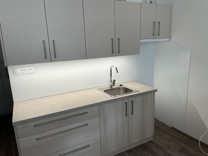 Po naší rekonstrukci bytového jádra v bytě 1+1 jsme prováděli montáž bílého lakovaného skla do kuchyně. Sklo je zaměřeno a vyrobeno na míru.