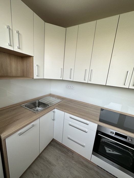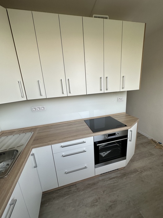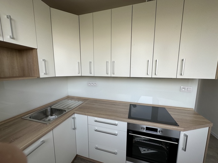 V bytě 2+1 jsme prováděli rekonstrukci bytového jádra na klíč. Tato rekonstrukce je pro našeho stálého zákazníka. Skleněný obklad a kuchyň je na míru. Sklo je kalené a nalakované dle výběru zákazníka.
