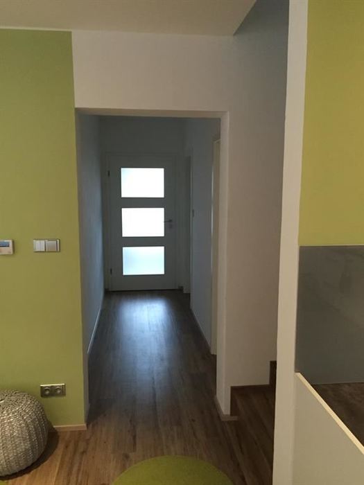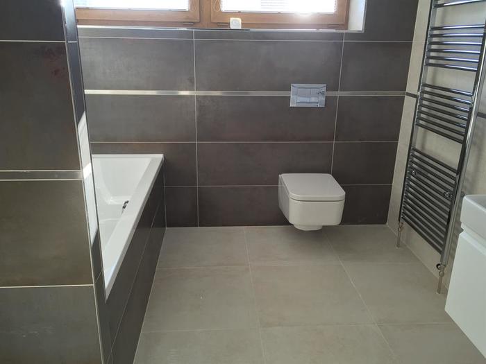 Pro investora jsme prováděli na klíč veškeré stavební práce a řemesla na ŘRD. Stavbu jsme převzali ve fázi hrubé stavby bez příček. V této novostavbě jsme postavili dvě koupelny, vybetonovali schodiště, vyzdili příčky, provedli omítky, sádrokartonové stropy včetně zateplení, kompletní - voda, topení, elektro. Kompletace stavby, podlahářské a malířské práce. V domě je rozveden do obou pater video zvonek s venkovní kamerou. Dále je namontován alarm. Kompletní datové a anténní rozvody.