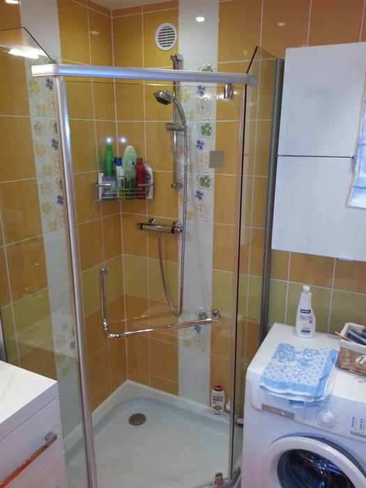 Rekonstrukce koupelny v bytě 3+1 v Třebíči byla provedena obložením původního bytového jádra. Bytové jádro je zachováno. Byla provedena výměna vany za sprchový kout a změněna poloha zařizovacích předmětů. Stěny bytového jádra jsou obloženy sádrokartonem, na který je nalepen obklad. Nová vodoinstalace, odpady a elektroinstalace.