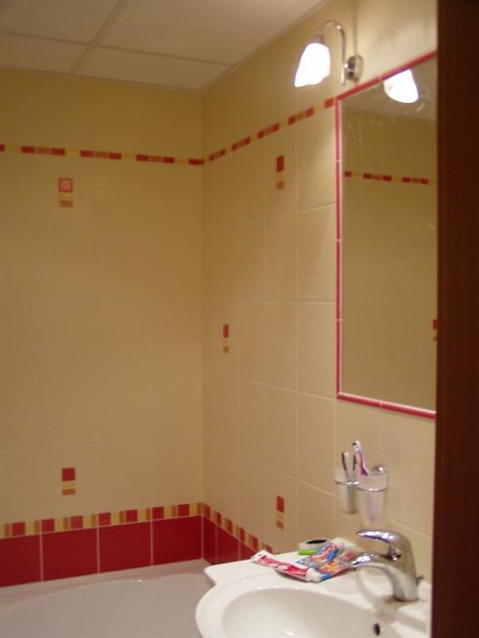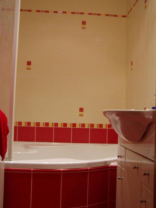 Rekonstrukce bytového jádra v panelovém domě. Byt o velikosti 3+1. Koupelna a WC obloženo obkladem Bonsa. Koupelnu s WC na klíč jsme stavěli v Praze Chodov.