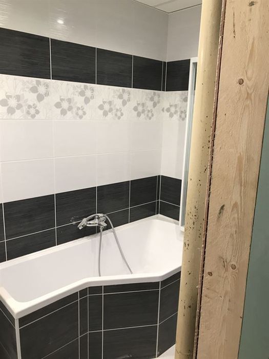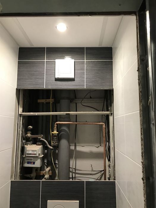 Rekonstrukce bytového jádra a interiéru bytu v cihlovém činžovním domě. Pro vstup do koupelny jsme provedli osazení dvoupouzdra na posuvné dveře. Koupelna je zvětšena o původní chodbičku do kuchyně. Do nové koupelny jsme osadili vanu BeeHappy od Ravaku. WC jsme osadili konstrukcí pro jádra od Geberitu. Nad závěsným WC jsme provedli přípravu pro truhlářský výrobek na míru - dvířka stoupačky. Koupelna a WC jsou osazeny LED bodovkami. Koupelnu i WC jsme obložili obkladem Calvano. Z důvodů snadné opravy po případném vytopení od horních sousedů je v prostorech nového jádra namontován minerální podhled (strop z čtverců 60x60). Součástí této rekonstrukce bytu je nové kompletní rozvody elektroinstalace (po výběru zákazníka budou strojky osazeny ozdobnými krytkami). Součástí elektrorozvodů je i nový rozvod TV a datový. Kompletní nové instalace pro budoucí kuchyň. V bytě (chodby a pokoje) jsou provedeny nové omítky zdí i stropů. Z prostoru obývacího pokoje byly zazděny dveře do pokoje, který byl průchozí do dalšího pokuje. Byl vybourán a vystavěn nový vstup do pokojů, který je proveden tak, aby měly oba pokoje samostatný vstup. Ve Vstupní chodbě byl instalován sádrokartonový podhled.