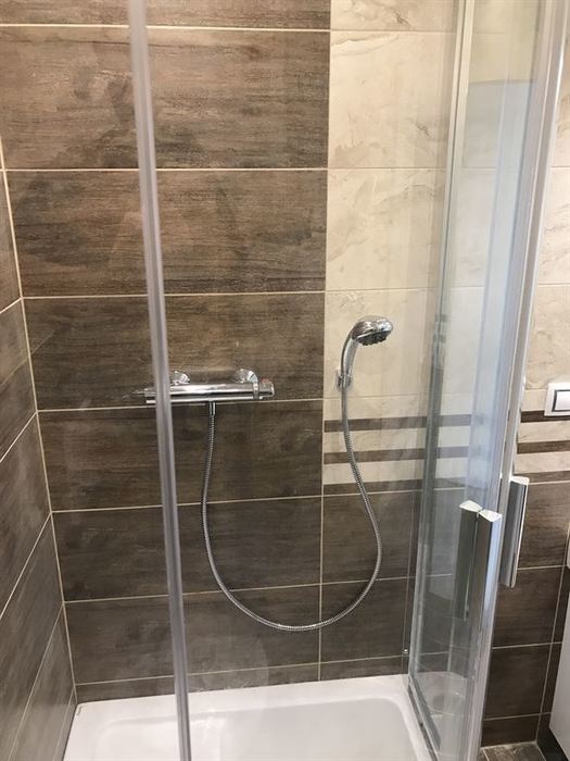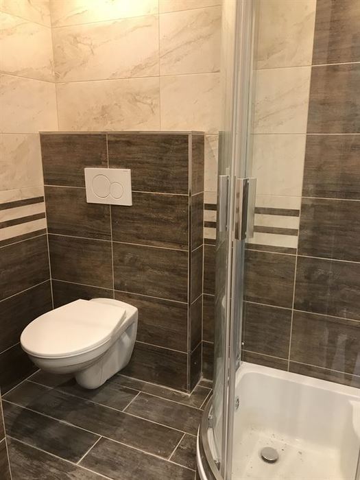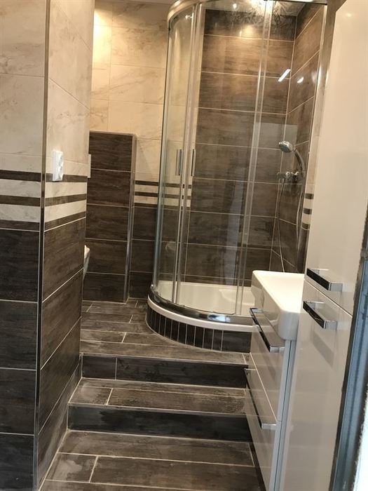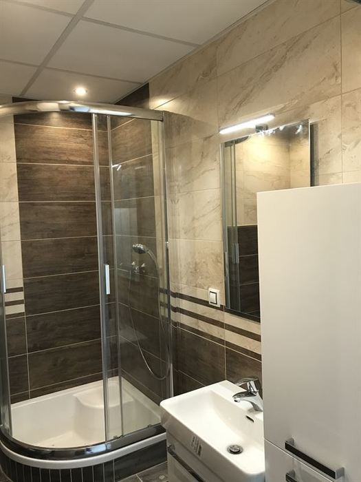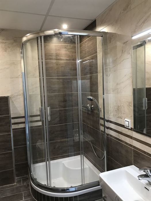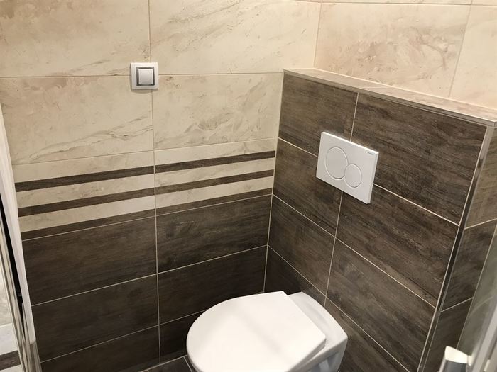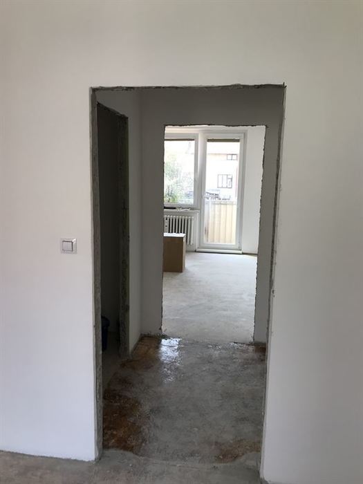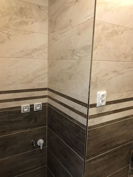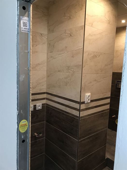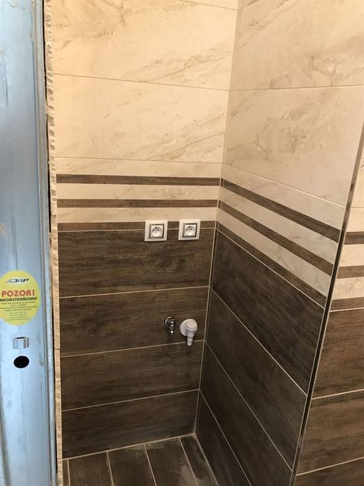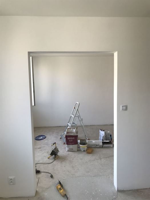 Rekonstrukce bytového jádra a interiéru bytu s výřezem panelu v Moravských Budějovicích. Původní bytové jádro je odstraněno. Nové bytové jádro je kompletně tvarem změněno, proto v koupelně vznikly schodky. Koupelna je osazena závěsným WC Geberit. Pro sprchový kout je použit set od Ravaku s názvem Sabina s hlubokou sprchovou vaničkou. Všechny baterie jsou od českého Novaservisu. Dveře do koupelny jsou v provedením zajížděcí do pouzdra JAP. Za dveřmi se nachází prostor pro pračku a sušičku. Součásti rekonstrukce je i rekonstrukce interiéru s výřezem panelu, kompletní elektroinstalace zásuvkového i světelného okruhu. Nové sádrokartonové stropy v celém bytě s LED osvětlením v pokojích a chodbách v koupelně je nainstalován minerální strop Amstrong s Led osvětlením. Kompletní vystěrkovaní poškozených stěn s výmalbou. V rámci rekonstrukce jsme prováděli i podlahářské práce a dodávku a montáž bytových dveří s obložkovými zárubněmi včetně demolice a zapravení stávajících kovových zárubní.