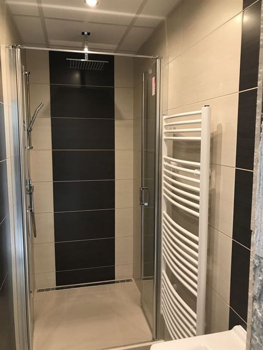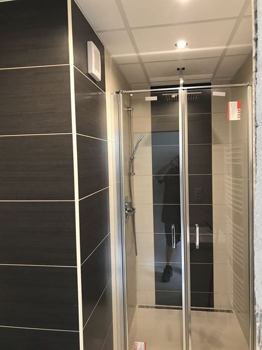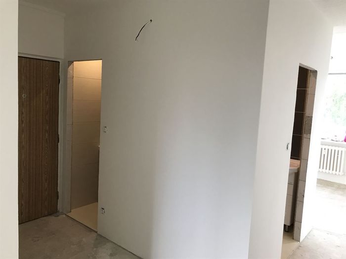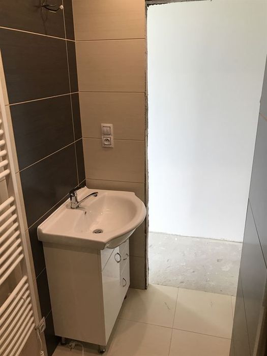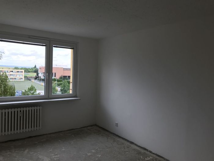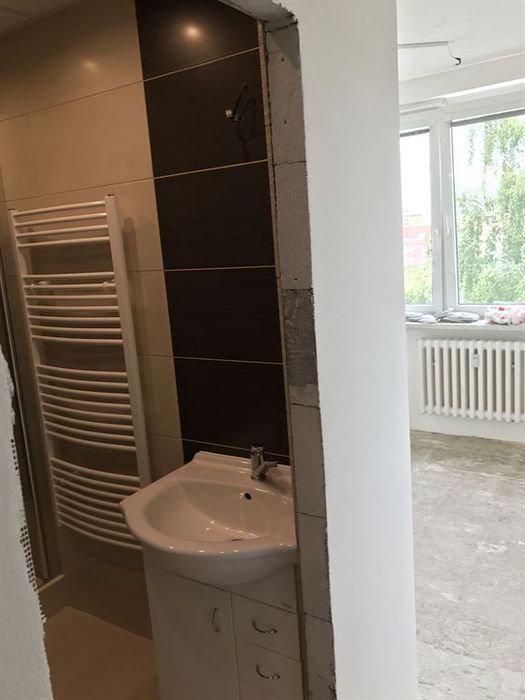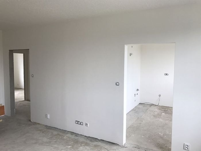 Rekonstrukce bytového jádra v panelovém domě a rekonstrukce interiéru bytu. Součástí rekonstrukce proběhla nová výstavba bytového jádra se sprchovým koutem a závěsným WC Geberit. Součástí sprchového koutu je nová moderní podomítková baterie s hlavovou a ruční sprchou. Na WC jsme osadili umývátko od firmy Kolo s baterií s bidetovou sprškou. Rekonstrukce pokojů obsahuje novou elektroinstalaci CU a novou výmalbu. Z kuchyně do obývacího pokoje bylo odstraněno kovové futro a prostup byl zapraven bez zárubně. Některé zdi museli být z důvodů špatné omítky vystěrkovány a vybroušeny. Součástí zakázky byla také výstavba nové šatny v chodbě.