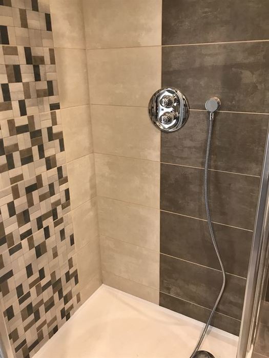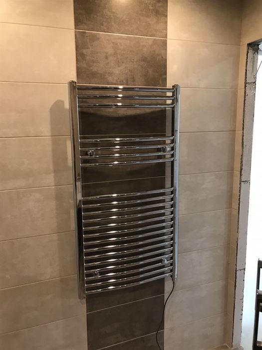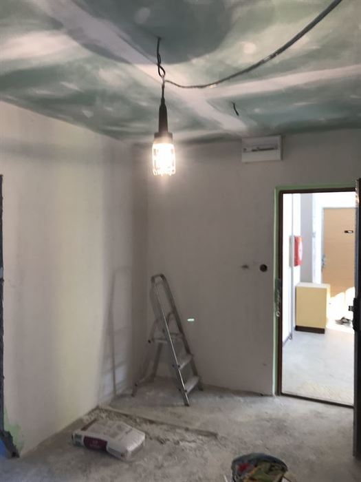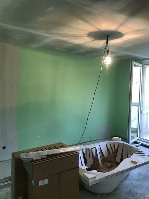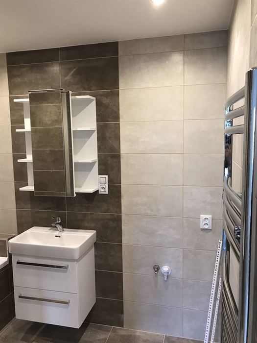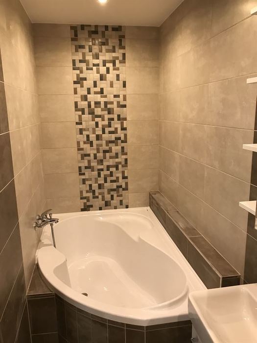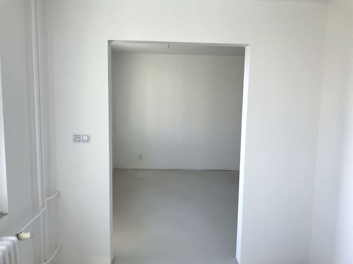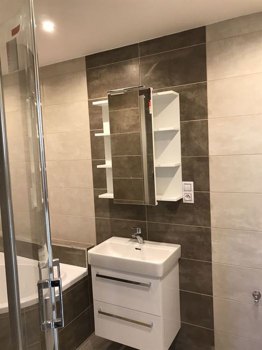 Rekonstrukce bytového jádra s výřezem panelu do nosného zdiva. V nové koupelně je jak sprchový kout 90 čtvrtkruh tak vana Rosa (Ravak). Bytové jádro je zvětšeno přes celou délku chodby a do kuchyně se bude vcházet přes obyvák novým výřezem panelu. Do koupelny jsme instalovali koupelnový nábytek od českého výrobce Krajcar. Koupelnové baterie jsou od českého Novaservis. WC konstrukce je použita od Geberitu. Součástí rekonstrukce bytu 3+1 byla kompletní elektroinstalace včetně změny přívodu 400V. Nové sádrokartonové podhledy s LED osvětlením v chodbě, koupelně a WC. Kompletní oprava stěn, nové stěrkování omítek a výmalby.