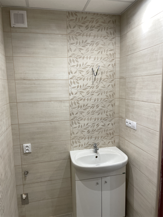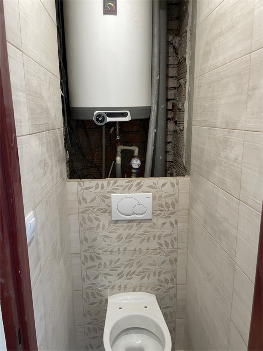 V cihlovém činžovním domě v bytě 2+1 jsme prováděli rekonstrukci zděného bytového jádra. Částečně jsme jádro přestavěli do jiného tvaru. V nové koupelně je instalován sprchový kout s odtokovým žlabem. V prostoru WC je ve stoupačce nainstalován bojler pro ohřev TUV.