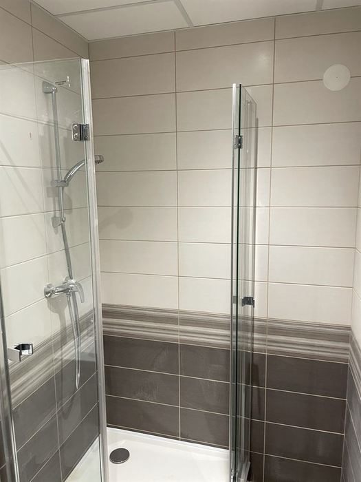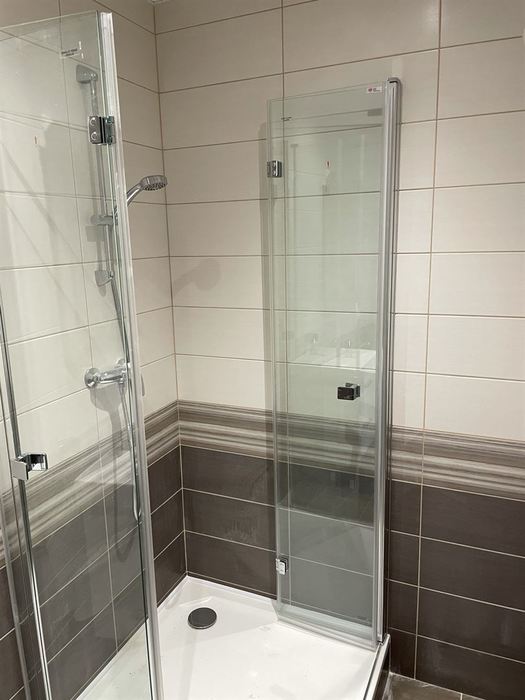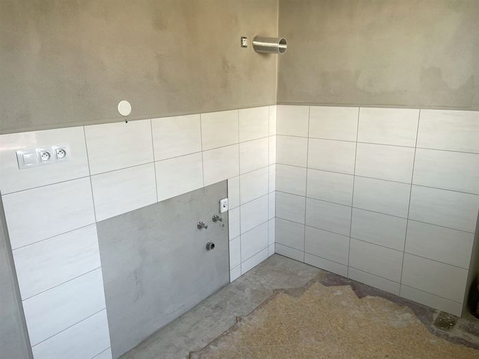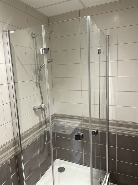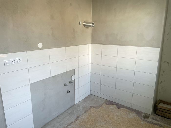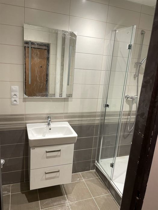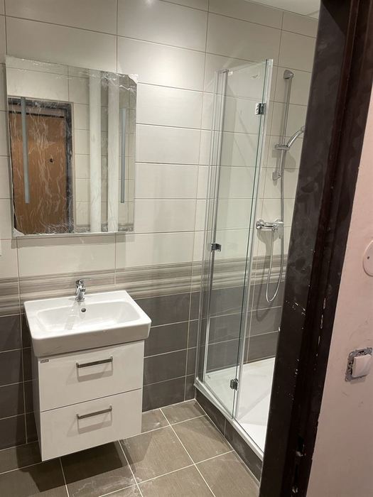 V bytě 2+1 jsme prováděli rekonstrukci bytového jádra. Nové zděné bytové jádro má kompletní novou vodu, odpady, elektroinstalaci. Koupelna je větší o chodbu a je do ní osazen čtvercový sprchový kout se skleněným sprchovým koutem osazen skládacími panty (z důvodů lepšího přístupu do sprchového koutu). Osazen je nový koupelnová nábytek od firmy Krajcar a nová vodovodní baterie od Novaservisu. WC je osazeno závěsným klozetem s konstrukcí od Geberitu. Koupelna i toaleta mají nainstalovány snížený minerální podhled s LED osvětlením. V kuchyni jsme provedli přípravu pro budoucí novou kuchyňskou linku.