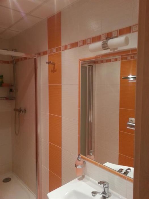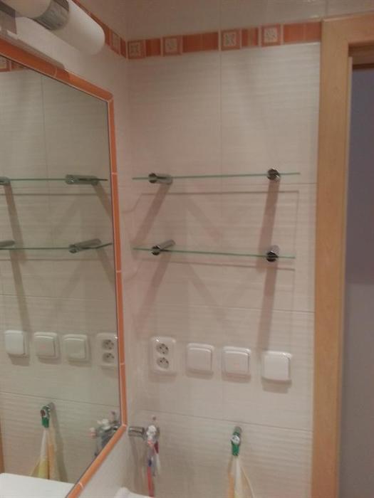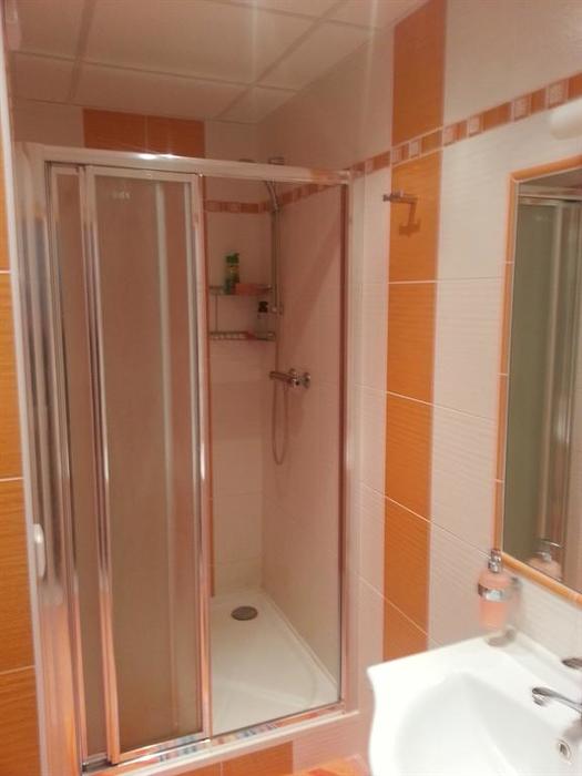 V Třebíči v bytě 3+1 jsme prováděli rekonstrukci bytového jádra. Dodávky byla prováděna na klíč. Součásti výstavby nového bytového jádra nebyla montáž elektroinstalace. Použitý obklad je India od společnosti Rako. Původní jádro bylo vybouráno a nové jsme změnili tvarem i polohou a proto je nová kuchyňská linka proti oknu. Použité koupelnové doplňky jsou od firmy Novaservis a nejsou vrtané, ale lepené.
