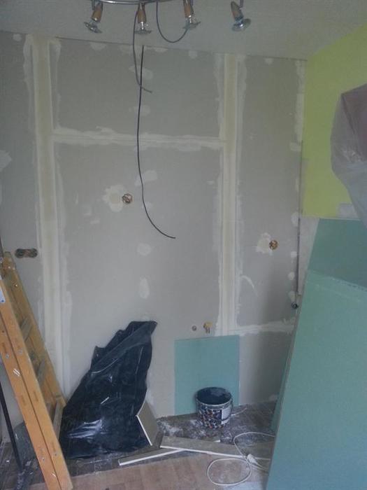 Prováděli jsme rekonstrukci bytového jádra v bytě 1+1 v Třebíči. Původní jádro je rozměrově zachováno (vnitřní rozměry). Byly jen změněny pozice zařizovacích předmětů koupelny. Na přání zákazníka jsme toto jádro prováděli ze sádrokartonu. Sprchové dveře s oboustranným otvíráním (dovnitř i ven) je od firmy Roltechnik a použitá vanička z litého mramoru ( 100 x 80 ) zajistí komfortní sprchování. Baterie jsme použili od firmy Novaservis. WC kombi je Lyra ( krátké provedení). Minerální strop s bodovkami na 12V. Tuto rekonstrukci jsme prováděti kompletní - všechna řemesla a kompletní dodání materiálů a vybavení tedy NA KLÍČ.