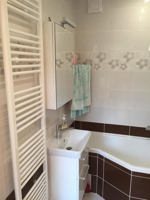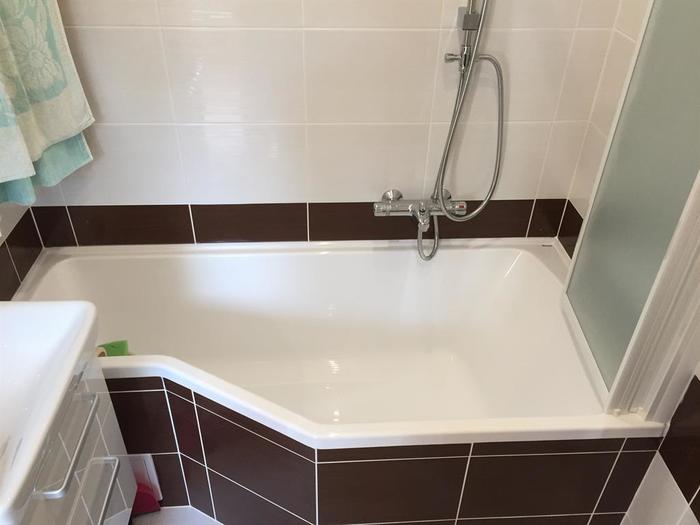 Rekonstrukce bytového jádra v panelovém domě. Původní jádro bylo demontováno. Nové bytové jádro bylo vystavěno z Ytongových tvárnic. Nová koupelna byla postavena o 20 cm delší na přání zákazníka. Do koupelny jsme namontovali vanu od Ravaku - BeHappy. WC je osazeno závěsným klozetem o Geberitu a rohovým umývátkem. V rámci rekonstrukce jsme provedli montáž nové elektroinstalace koupelna, kuchyň, WC, chodba, obývací pokoj a výměnu rozvaděče s jističi.