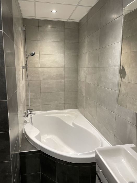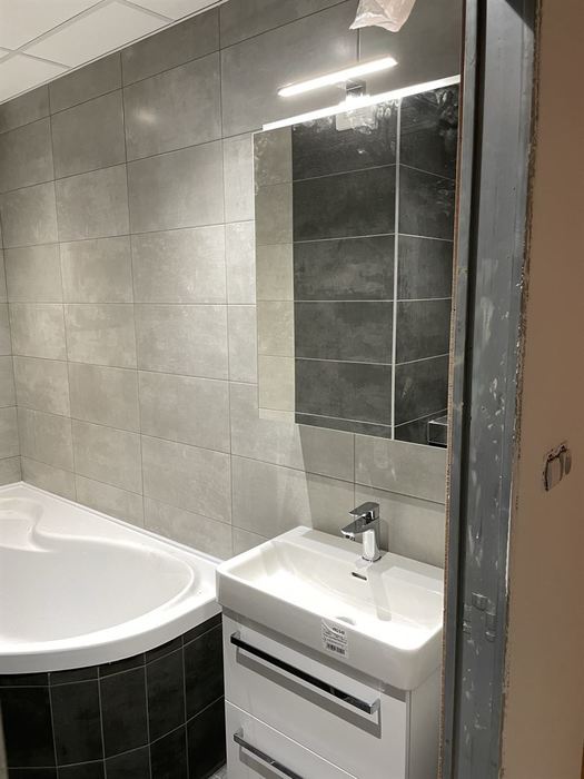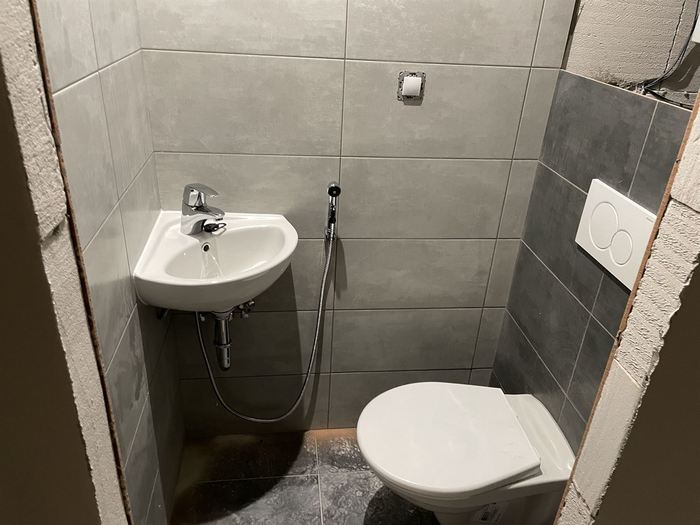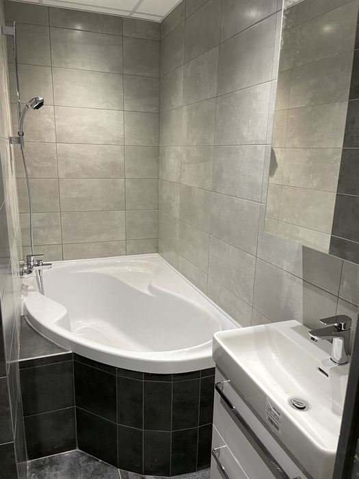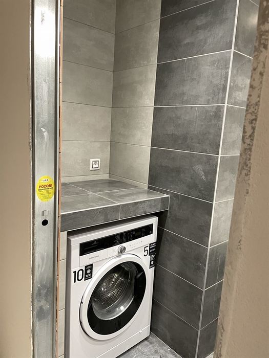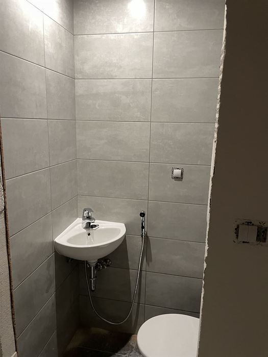 V panelovém domě v bytě 4+1 jsme prováděli rekonstrukci bytového jádra. Nové zděné bytové jádro má nový tvar a je osazeno vanou Rosa. Pro vstup do koupelny bylo použito dveřní pouzdro na zazdění pro posuvné dveře. Koupelnový nábytek je od firmy Krajcar. Instalované vodovodní baterie jsou od Novaservisu. WC je osazeno konstrukcí Geberit se závěsným WC a rohovým umývátkem.