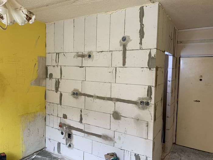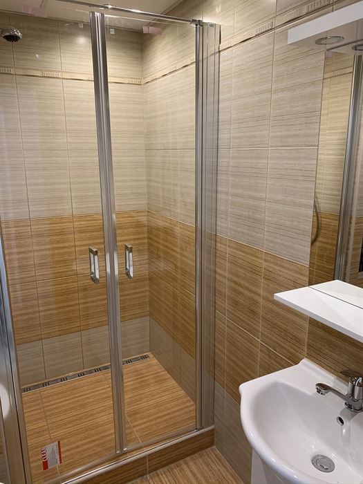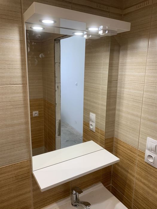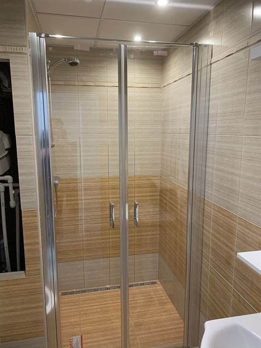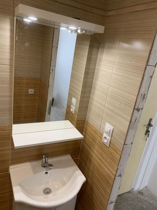 V panelovém domě v bytě 1+1 jsme prováděli demolici stávajícího umakartového bytového jádra a následné vyzdění nového zděného jádra z Ytongových tvárnic. Součástí rekonstrukce je nová vodoinstalace, odpady a elektroinstalace včetně nového CU přívodu do bytu výměny HL jističe a kompletní výměna bytového rozvaděče s jističi. Pro obložení koupelny jsme použili obklad Kilimi. Koupelnový nábytek je od firmy Keramia. Sprchový kout je v provedení lítačky (otevírání na obě strany). V podlaze sprchového koutu je zabudován nerezový odtokový žlab. Pro sušení je v koupelně namontován el. topný žebřík (600/900). Pod top. žebříkem je příprava pro pračku. Koupelna je spojena s WC a je nainstalován nový kombi klozet.