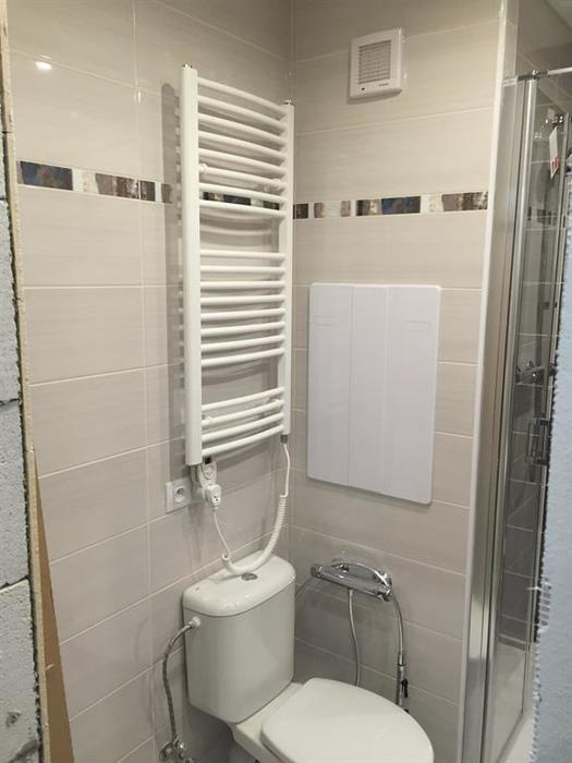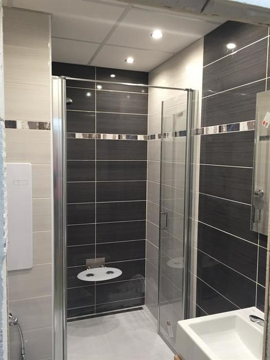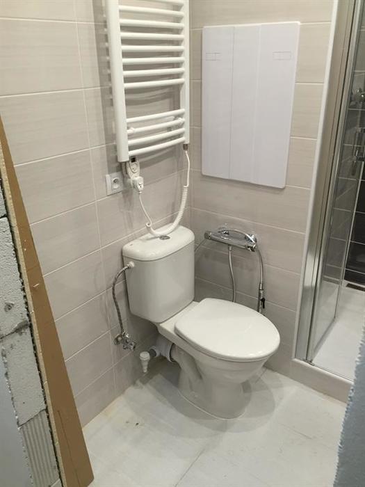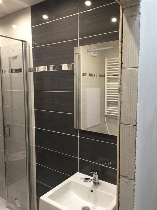 V Ivančicích jsme prováděli rekonstrukci bytového jádra v panelovém domě. Původní jádro bylo osazeno plechovou sprchovou vaničkou o délce 120 cm. Poloha jádra je zachována a změnili jsme rozložení vybavení v koupelně. Koupelna je vybavena novým sprchovým koutem se zděnou vaničkou, Sprchové dveře v provedení lítačky od firmy Ronal. Sprchu jsme dále vybavili sprchovým sedátkem od Ravaku. Vodovodní baterie jsme použili od Novaservisu, Do takto přestavěné koupelny je umístěna také pračka. K novému WC jsme osadili termostatickou baterii s bidetovou sprškou, aby bylo možno WC používat jako bidet.