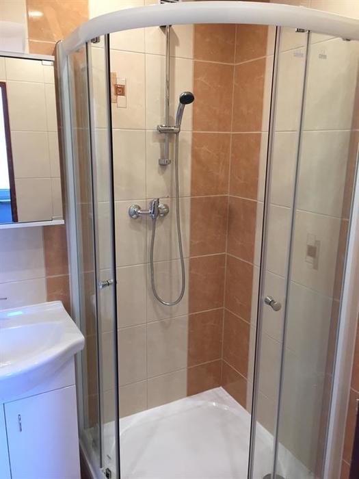 Rekonstrukce bytového jádra v panelovém domě byla prováděna na klíč. Do koupelny je osazen sprchový kout s vaničkou litý mramor. Původní staré panelákové WC bylo nahrazeno novým moderním WC.