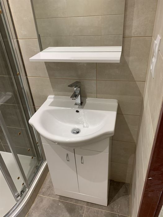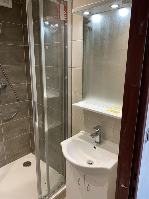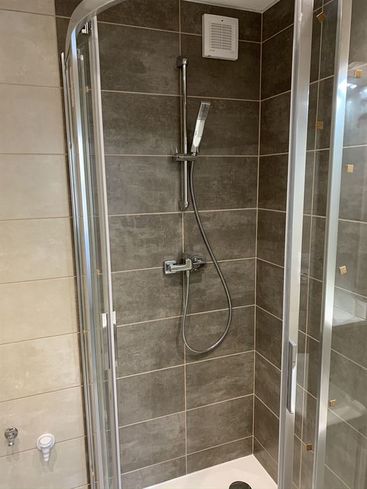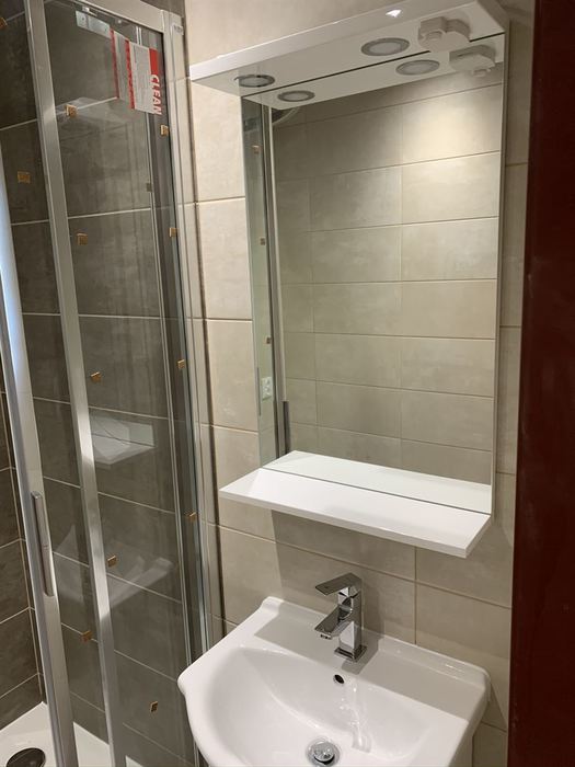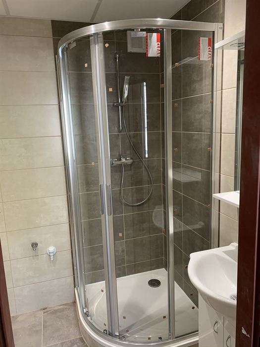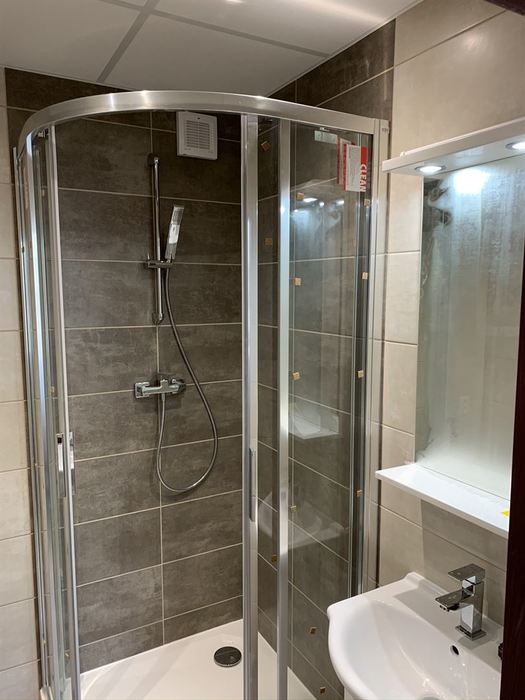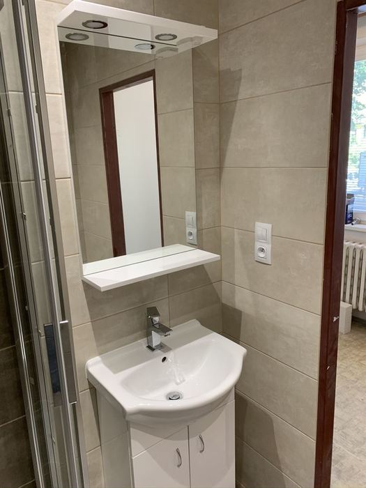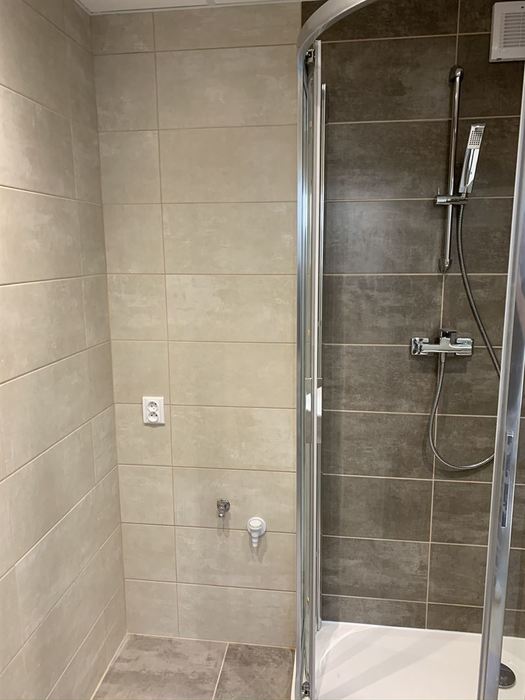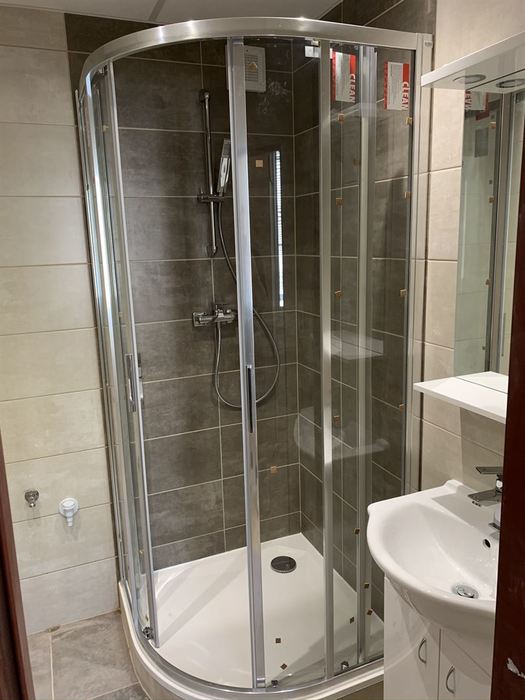 V panelovém domě bytě 2+1 v Třebíči jsme prováděli rekonstrukci bytového jádra, při které jsme na přání zákazníka zachovali vnitřní rozměry původního jádra. Nové bytové jádro je vyzděno z Ytongových tvárnic. Tato rekonstrukce je v bytě, který investor pronajímá. V koupelně je osazen sprchový kout s vaničkou z litého mramoru a skleněnou sprchovou zástěnou. Toaletu jsme osadili novým WC kombi a rohovým umývátkem s bidetovou baterií. Také jsme realizovali přípravu pro novou kuchyň včetně obkladů. Tato rekonstrukce bytového jádra byla prováděna na klíč včetně vodoinstalace a elektroinstalace.