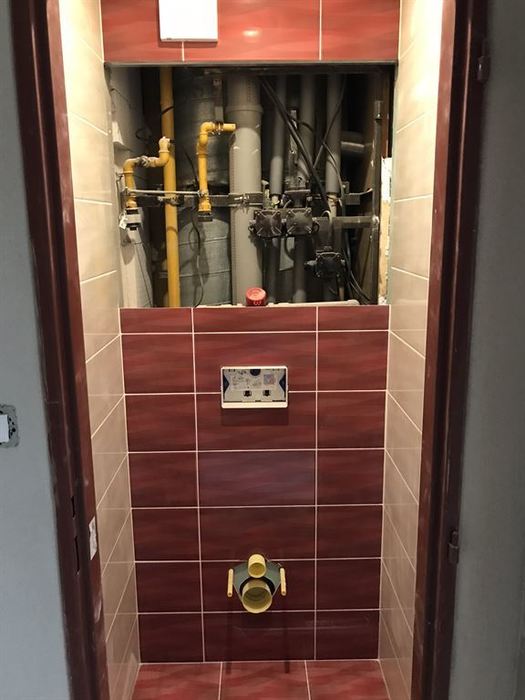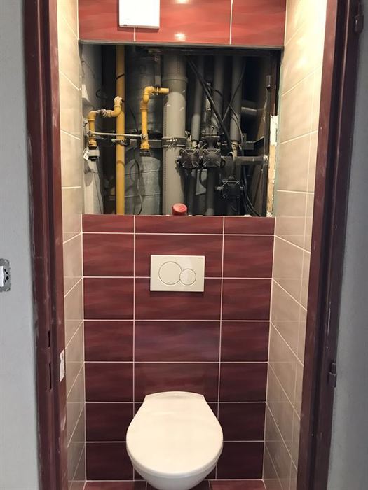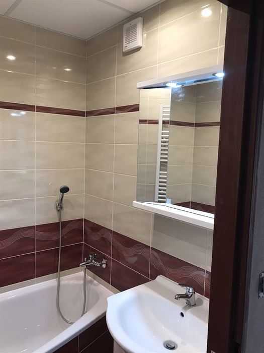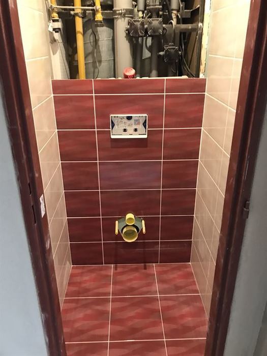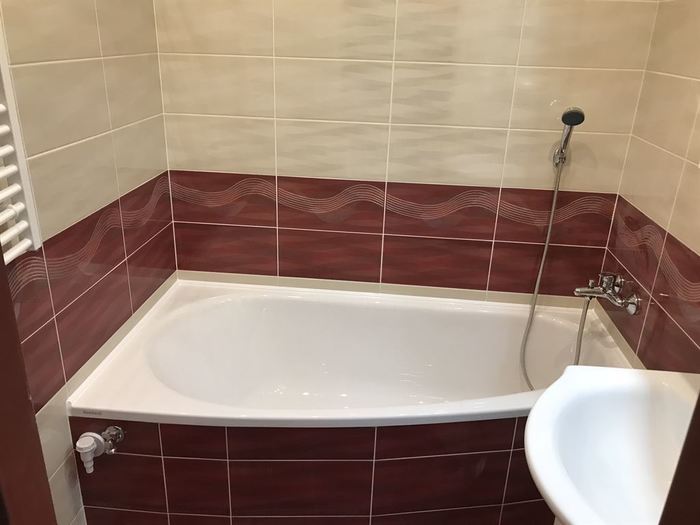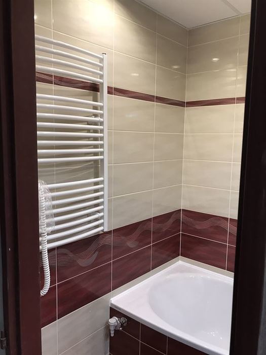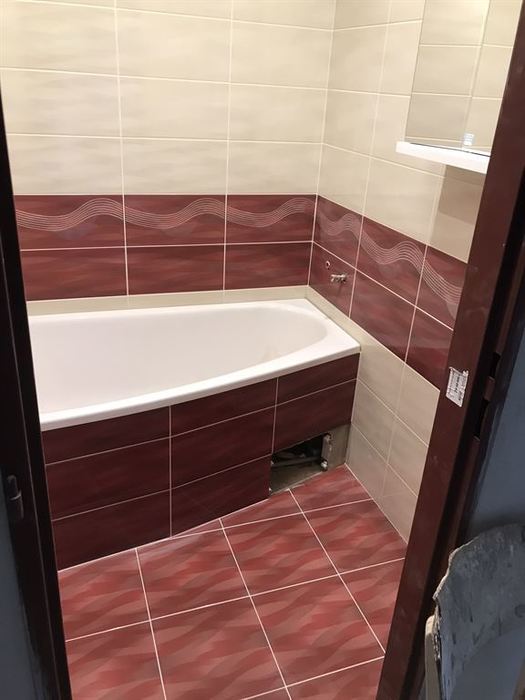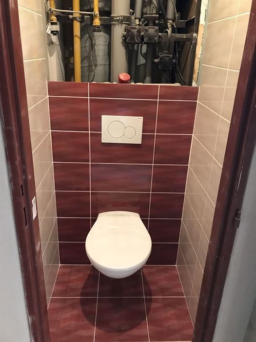 Rekonstrukce bytového jádra v Rosicích u Brna - původní umakartové jádro bylo odstraněno. Nové bytové jádro je vyzděno z Ytongových tvárnic. V součástí rekonstrukce bylo provedení nové vodoinstalace, odpadů a elektroinstalace. Obložení stěn je provedeno obkladem Gemma. V koupelně je nainstalovaná asymetrická vana Ariela 160L od českého výrobce Santech. Osazené baterie jsou taktéž od českého výrobce Novaservis. Pro závěsné WC jsme použili konstrukci Geberit. V koupelně a WC je osazen minerální snížený podhled s bodovým LED osvětlením.