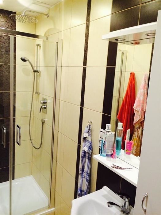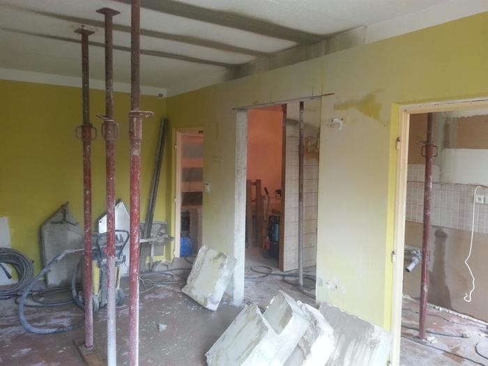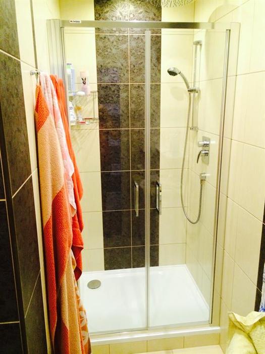Dokončili jsme rekonstrukci bytového jádra. Původní rozměry a poloha jádra jsou změněny. Nová koupelna byla osazena sprchovým koutem s vaničkou z litého mramoru o rozměru 100x100 a sprchovými skleněnými dveřmi s otevíráním dovnitř ven. Součástí zakázky bylo i provedení výřezu panelu do obývacího pokoje a zazdění 2ks stávajících dveří.