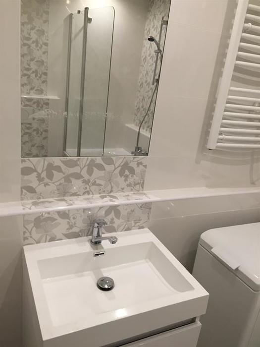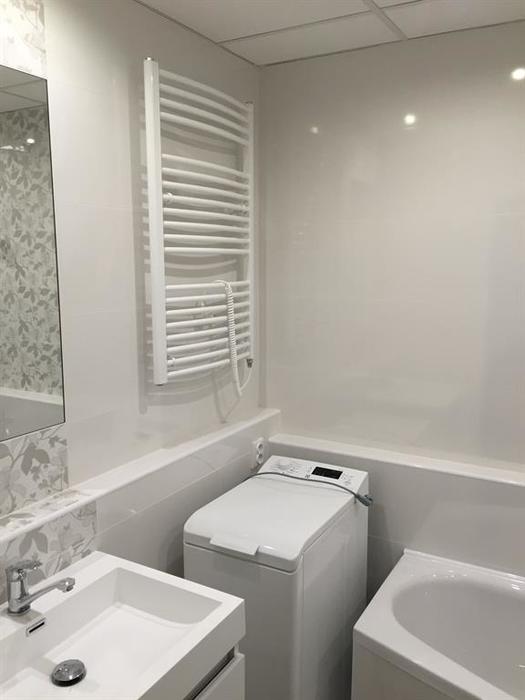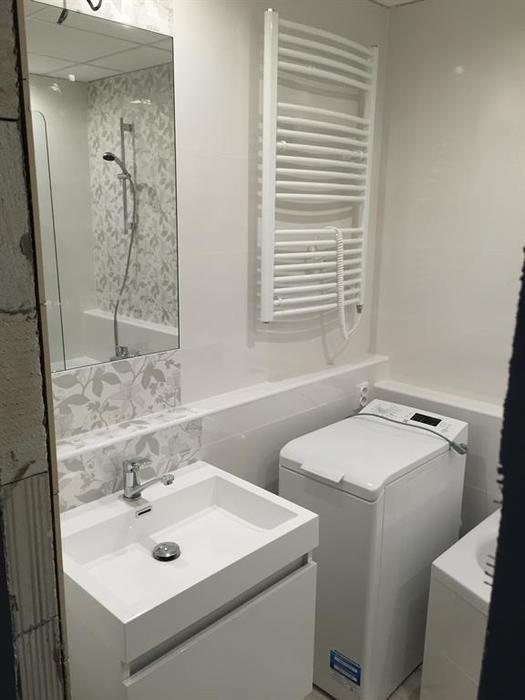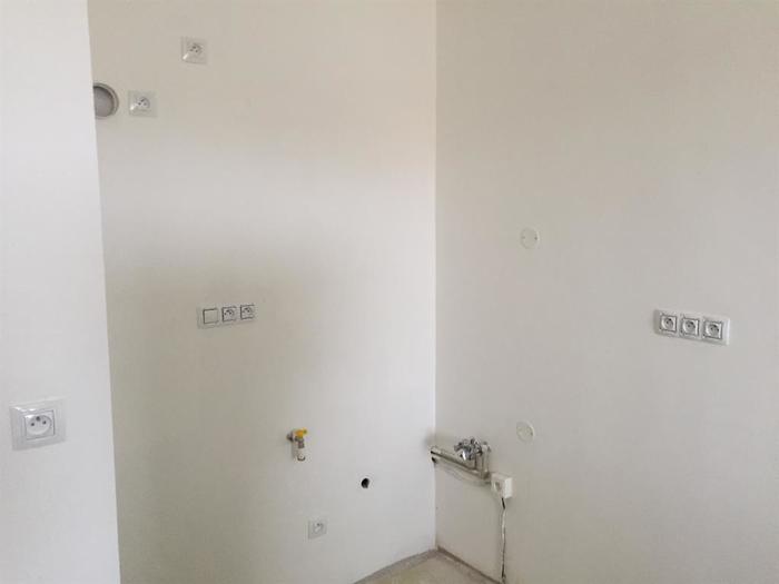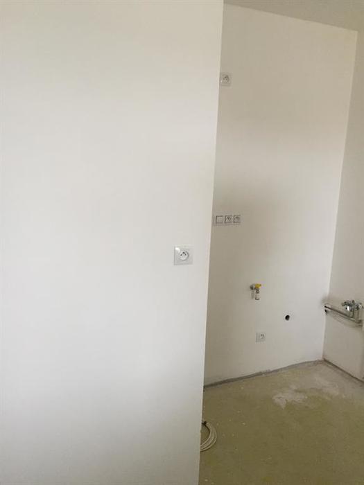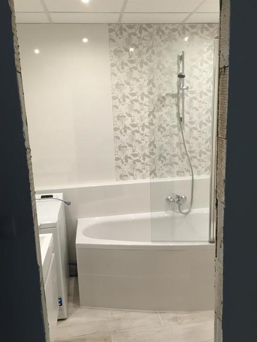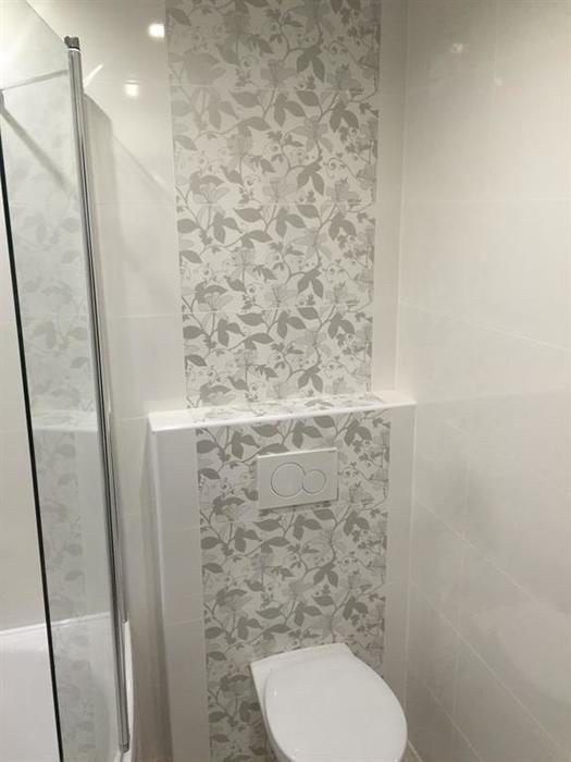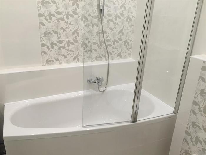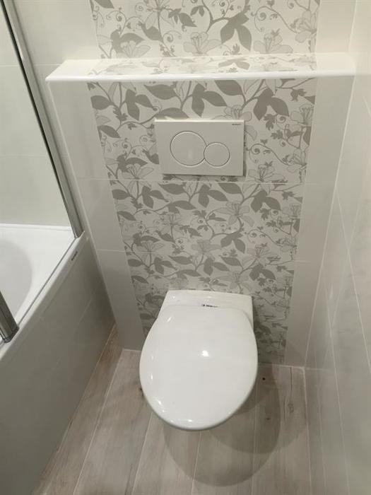Rekonstrukce bytového jádra v bytě 2+1 v panelovém domě. Novou koupelnu s WC jsme postavili do chodby. Tímto přemístěním investor získal vekou místnost, do které umístí obývací pokoj s kuchyňským koutem. Touto úpravou vznikne byt 3+kk. Nová koupelna je osazena konstrukcí toalety na zazdění Geberit, vanou Ariela, která je osazena sprchovou zástěnou a umyvadlem s nábytkem Verona. El. topný žebřík je umístěn nad pračkou a bude využíván hlavně k účelům sušení prádla. Z venkovní strany bytového jádra jsme nachystali přípravu pro novou kuchyňskou linkou.