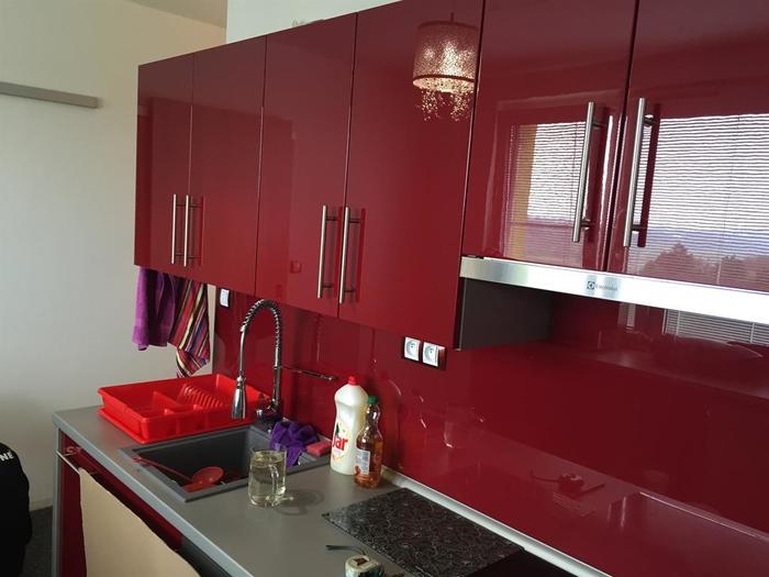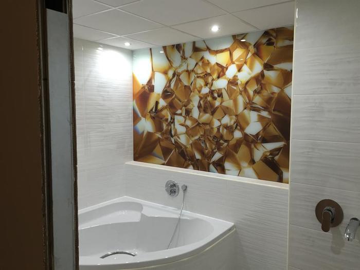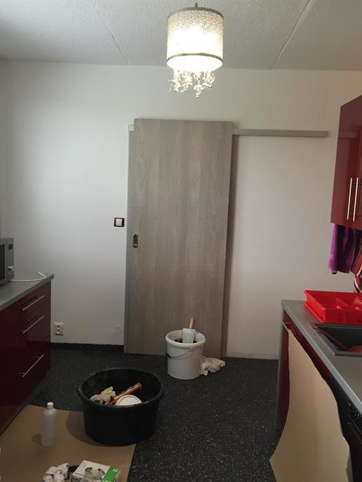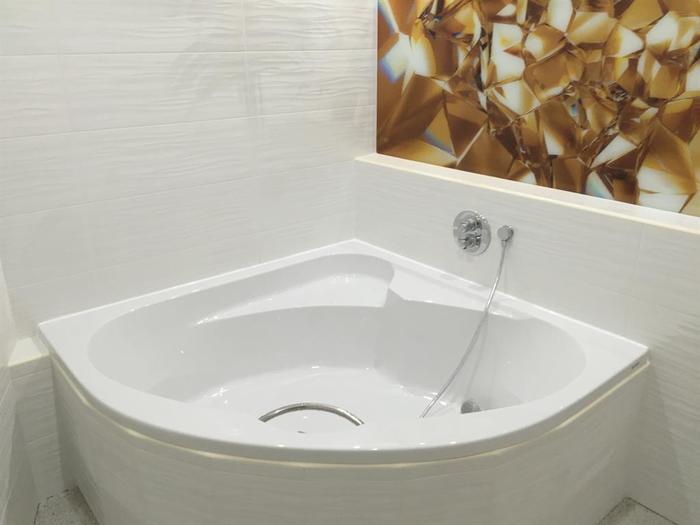 Prováděli jsme rekonstrukci bytového jádra a bytu. Do koupelny jsme osadili rohovou vanu a nad vanu jsme osadili kalené sklo s 3D obrázkem - Lacobel. V koupelně, WC a kuchyni jsme pokládali podlahu z kaménků - Topstone. V rámci rekonstrukce jsme dodávali kompletní rekonstrukce elektro - v celém byte nové rozvody. V celém bytě jsou provedeny nové stěrkované a broušené omítky.