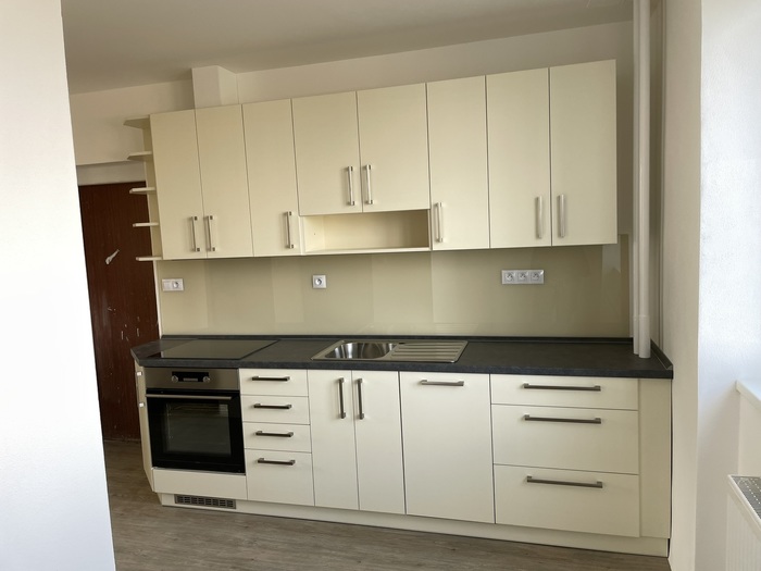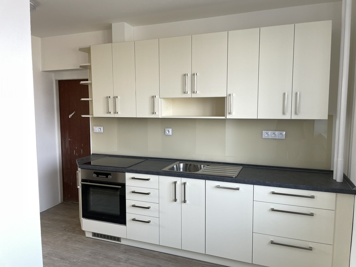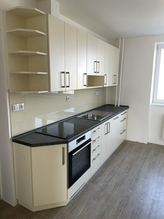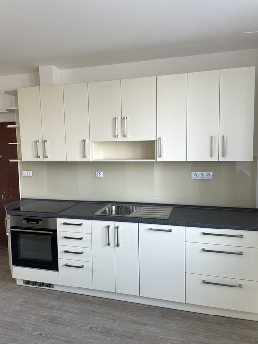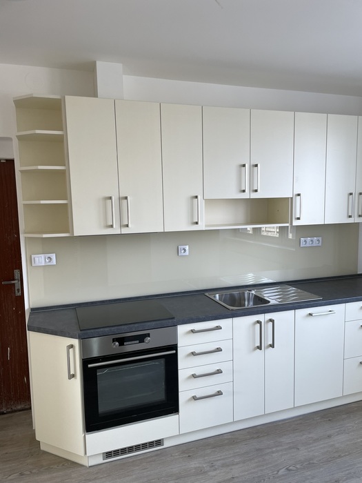 V Třebíči jsme prováděli kompletní rekonstrukci interiéru RD v 1NP. V rámci rekonstrukce na klíč jsme do nové kuchyňské linky montovali nový obklad pracovní plochy kuchyňské linky - lakované sklo. Sklo je o síle 6mm, vyrobené na míru, nalakované a namontované do nové kuchyně.